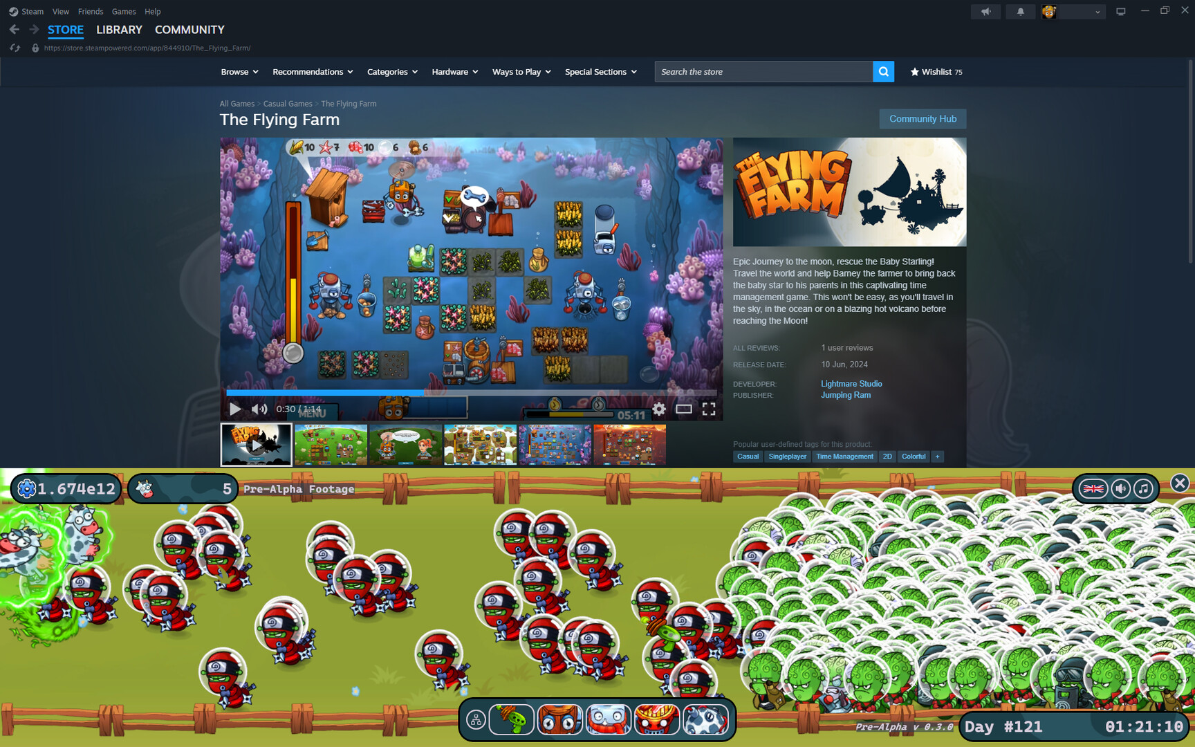 Fight off alien invaders abducting your cows in this colorful incremental game. Repel hundreds of them at once, collect the rewards, upgrade towers, tools and objects in the tech tree... Specialize and choose your game style and try to reach the next season…