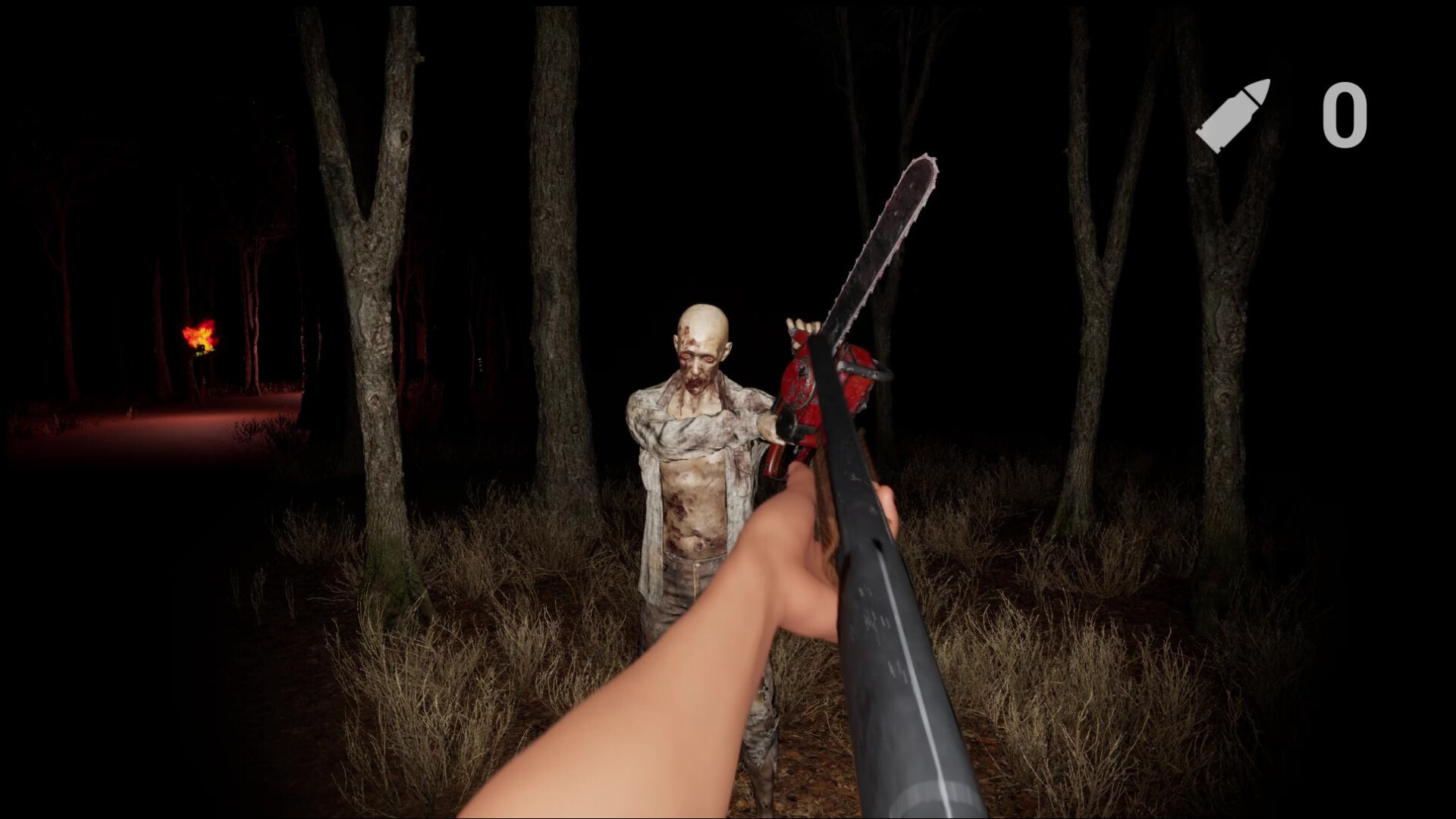 Light the torches scattered throughout the woods and push back the darkness as you explore.