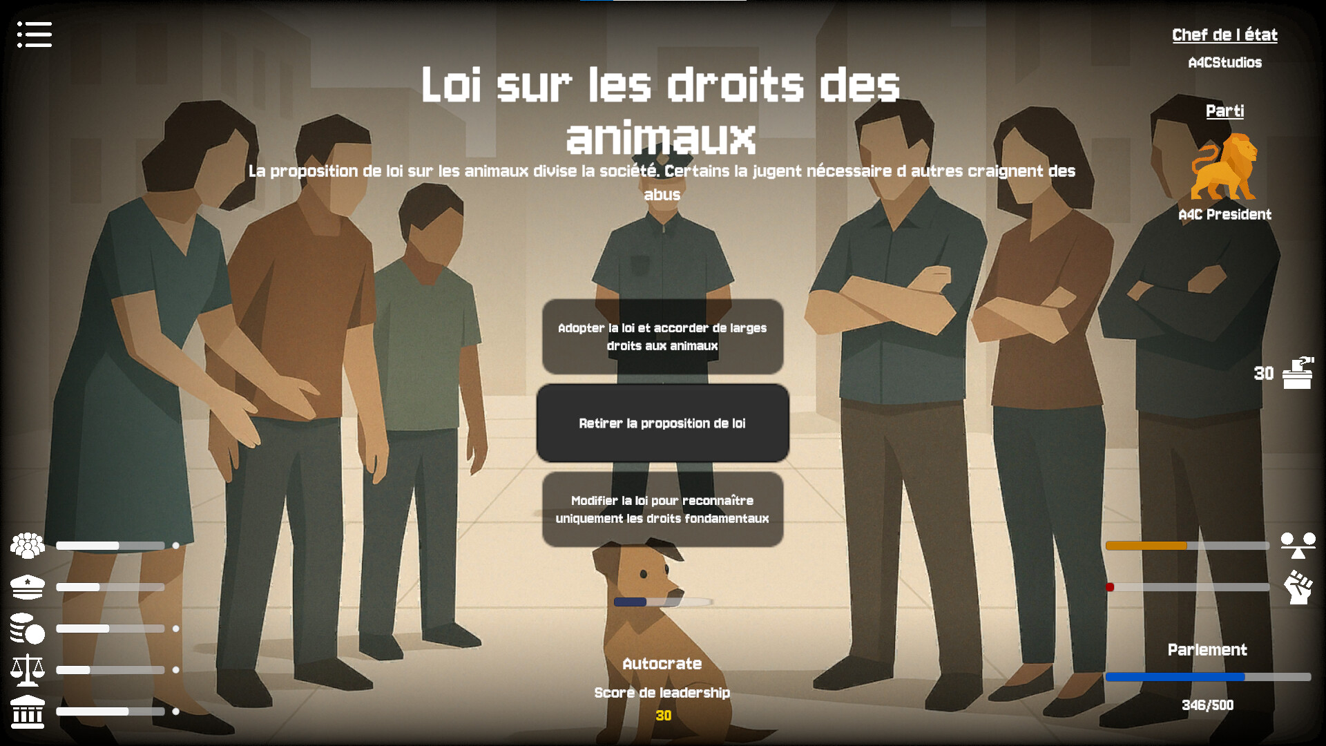 🏛️ Gameplay axé sur la gestion de l’État et le leadership