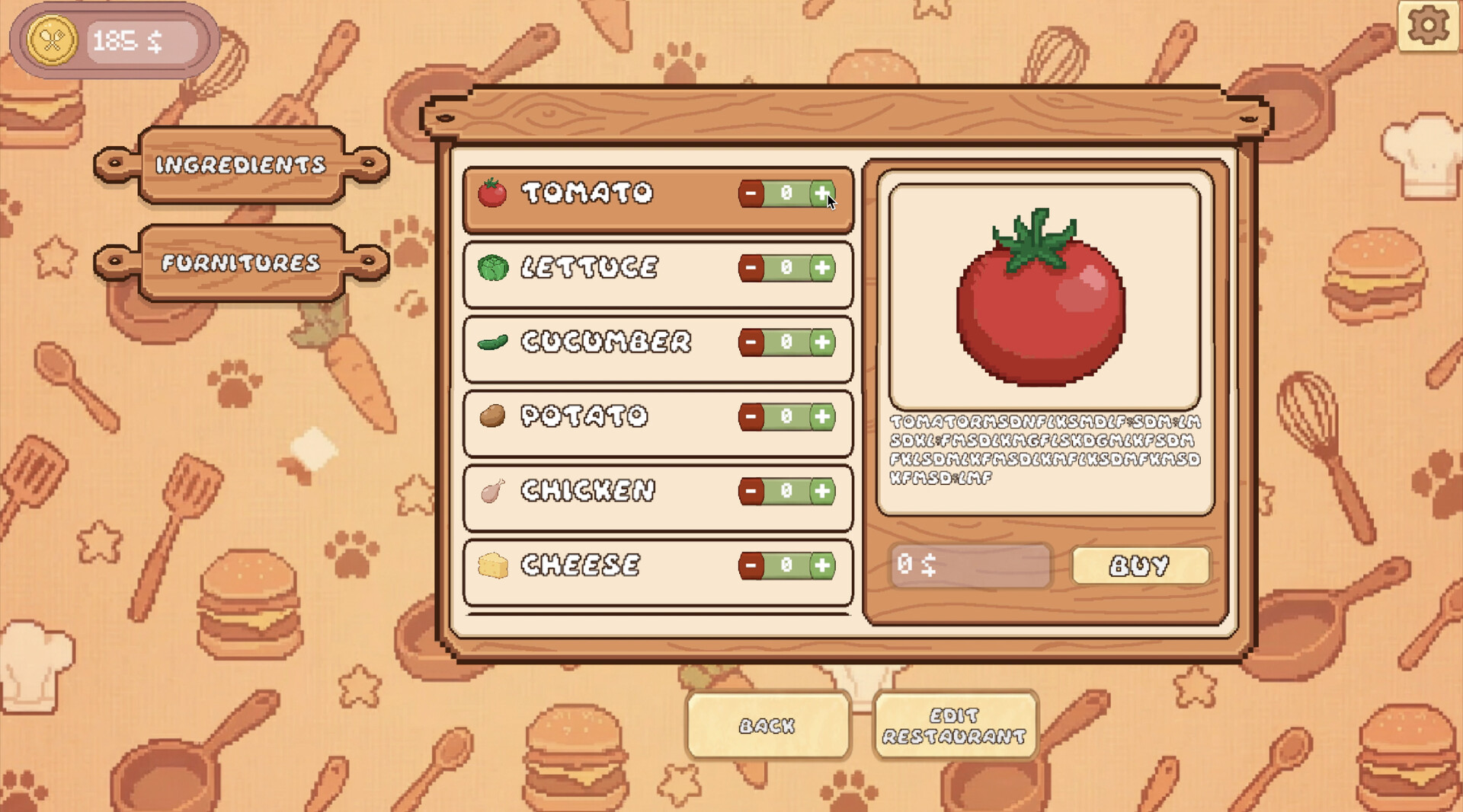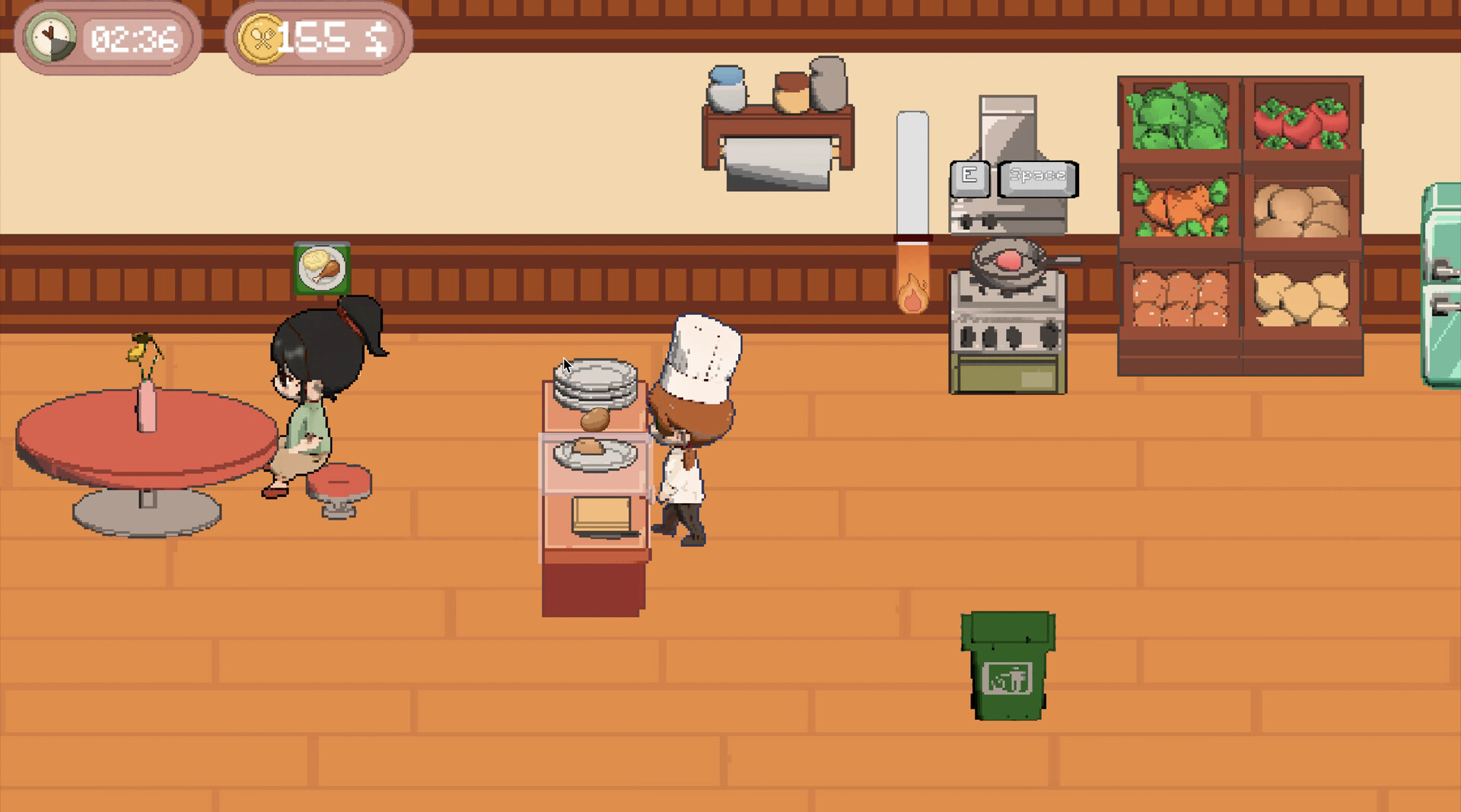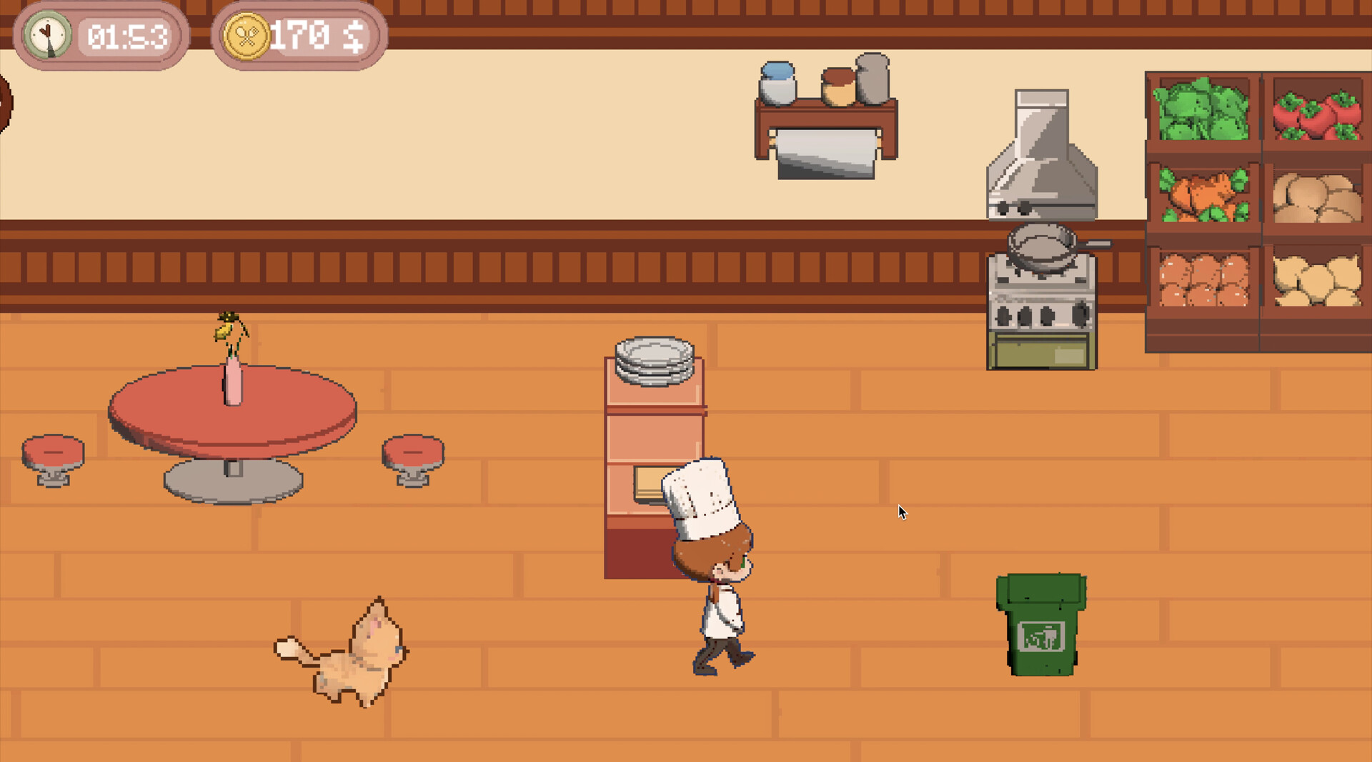 You run a small restaurant, managing each day as a self-contained challenge. Prepare meals, serve customers, and balance limited resources under constant time pressure. Orders arrive automatically, forcing you to react instantly, set priorities on the fly, and maintain momentum without hesitation. There is no waiting — only movement, timing, and focus.