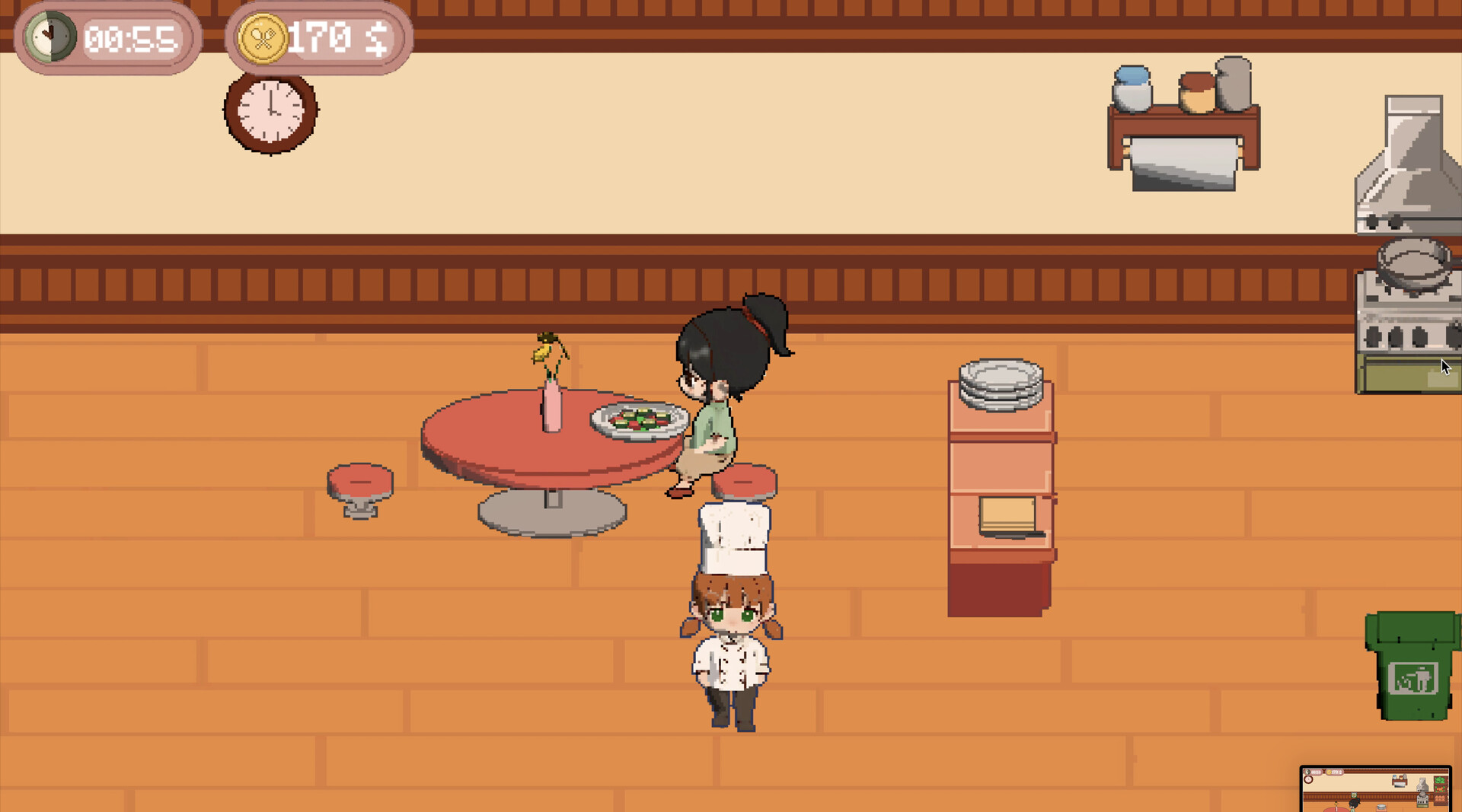 You run a small restaurant, managing each day as a self-contained challenge. Prepare meals, serve customers, and balance limited resources under constant time pressure. Orders arrive automatically, forcing you to react instantly, set priorities on the fly, and maintain momentum without hesitation. There is no waiting — only movement, timing, and focus.