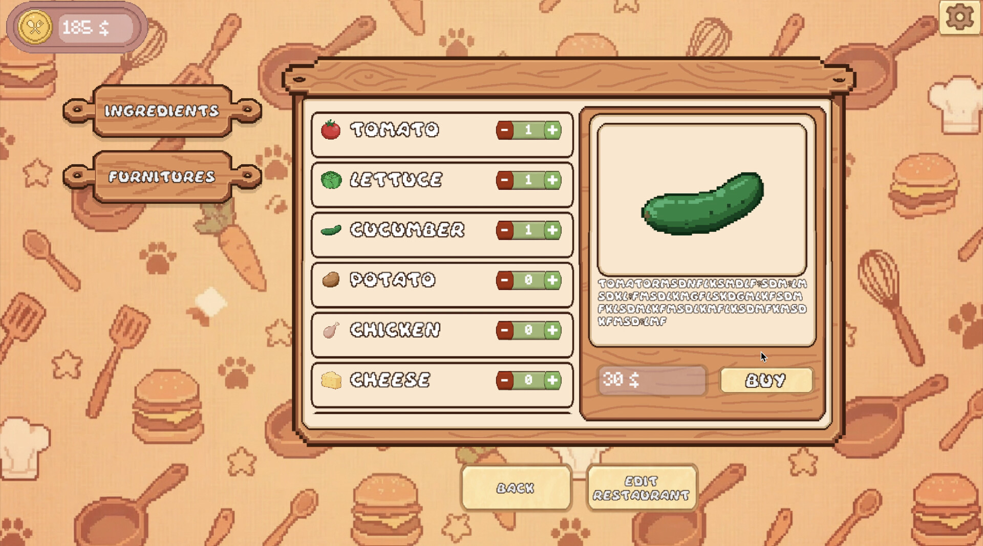 You run a small restaurant, managing each day as a self-contained challenge. Prepare meals, serve customers, and balance limited resources under constant time pressure. Orders arrive automatically, forcing you to react instantly, set priorities on the fly, and maintain momentum without hesitation. There is no waiting — only movement, timing, and focus.
