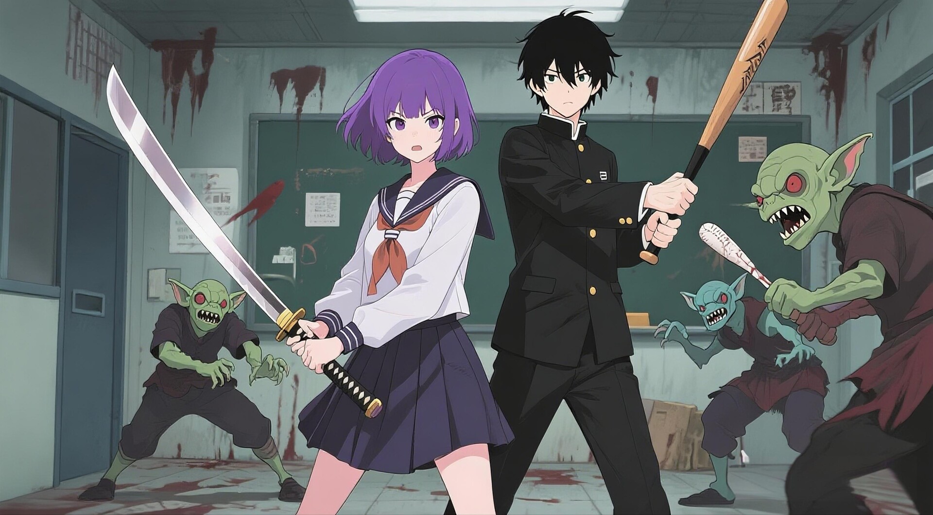 Unknown supernatural forces have torn apart reality and dragged the entire school into a treacherous barrier filled with monsters. Goblins, shadows, and other twisted monsters roam the corridors and classrooms, putting the survival of teachers and students at risk.