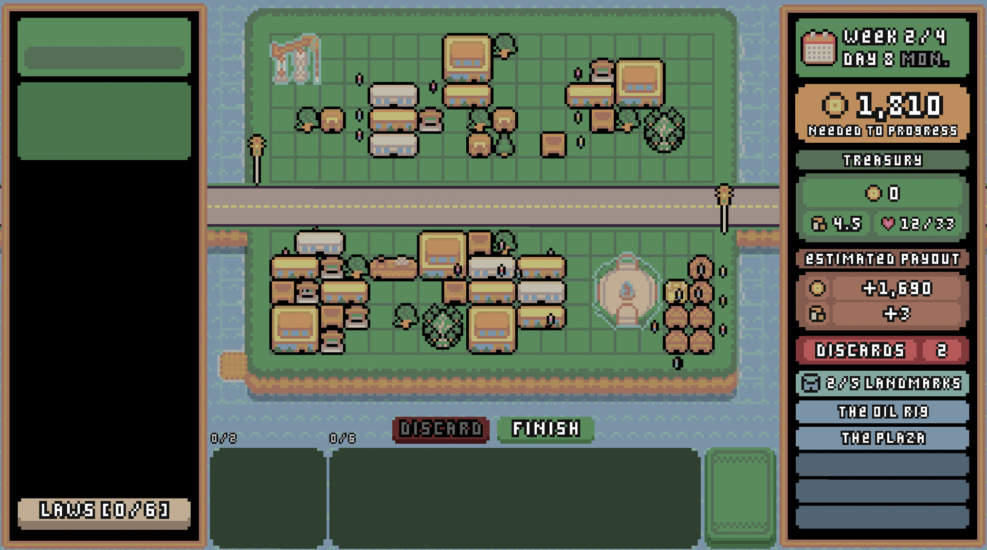 Town of Tinysville es un constructor de ciudades con construcción de mazos de estilo retro, donde cada colocación importa. Construye la ciudad de tus sueños carta por carta mientras gestionas cuidadosamente tu mazo, el espacio en la cuadrícula, los recursos disponibles, la belleza y los fondos municipales. Un edificio mal colocado puede hacer que tu aldea cuidadosamente diseñada se derrumbe.