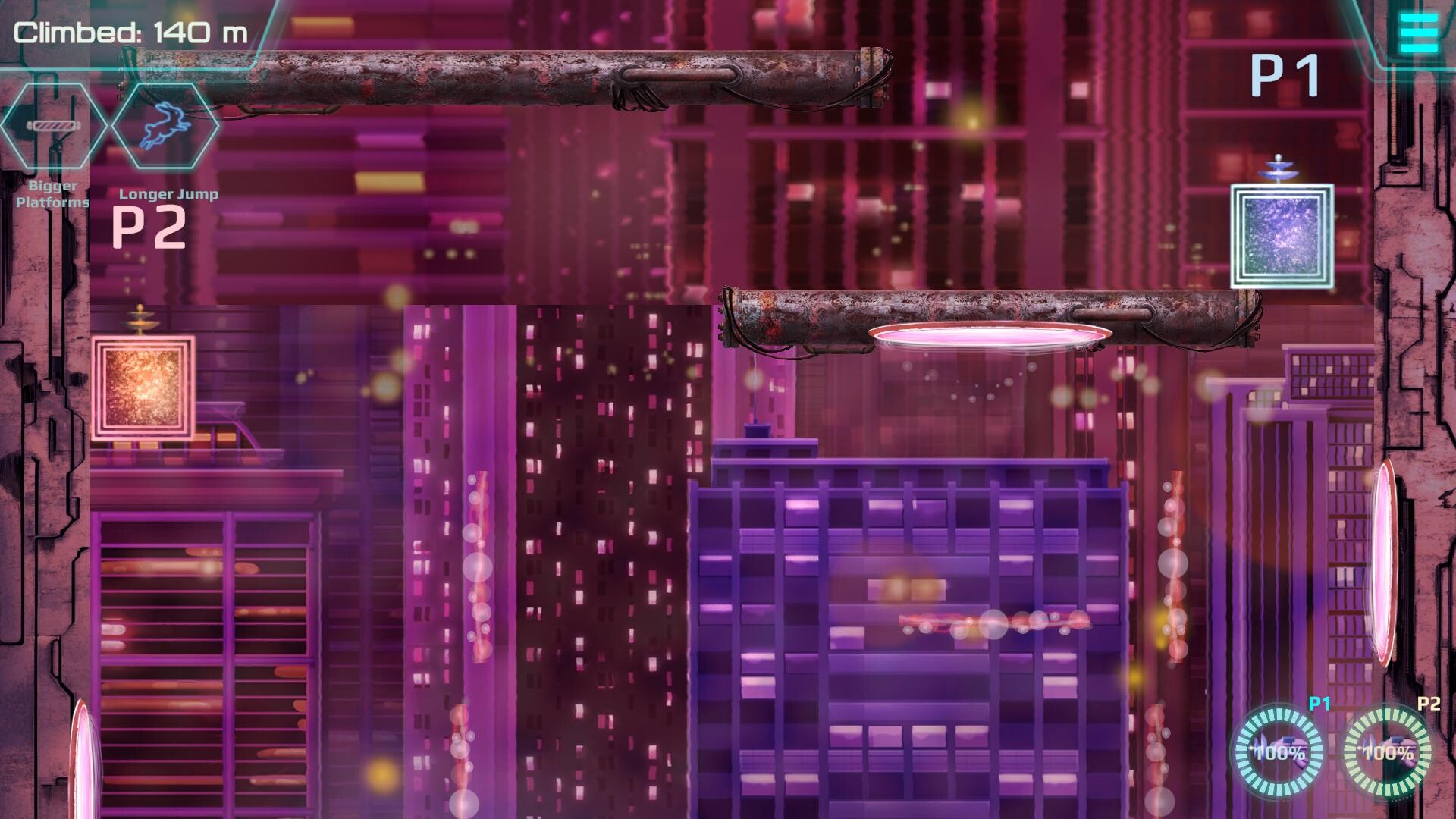 Sky Reach to neonowy, cyberpunkowy infinite climber, w którym każdy skok ma znaczenie. Strzelaj falami energii, zderzaj je ze światem, by tworzyć platformy, i wyznaczaj własną drogę w górę. Graj solo lub w lokalnej kooperacji i walcz o coraz wyższe wyniki.