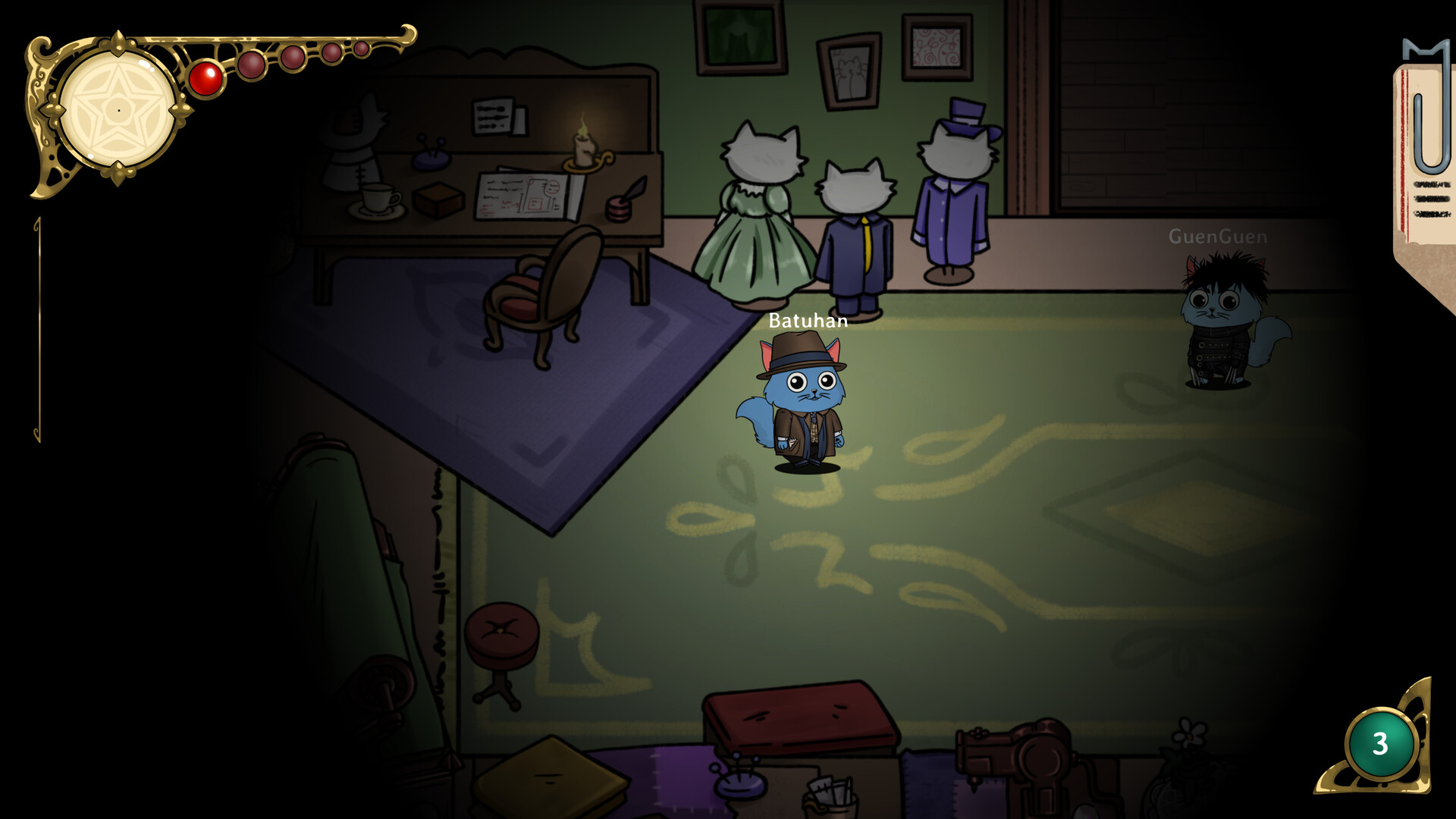 Meowstery Wisp is a social deduction game for 5-11 players, built around investigation, manipulation, and trust. Across five rounds, players search for artifacts to reach the final phase; while spies in disguise secretly hinder the investigation, and an occultist works toward a hidden master plan.