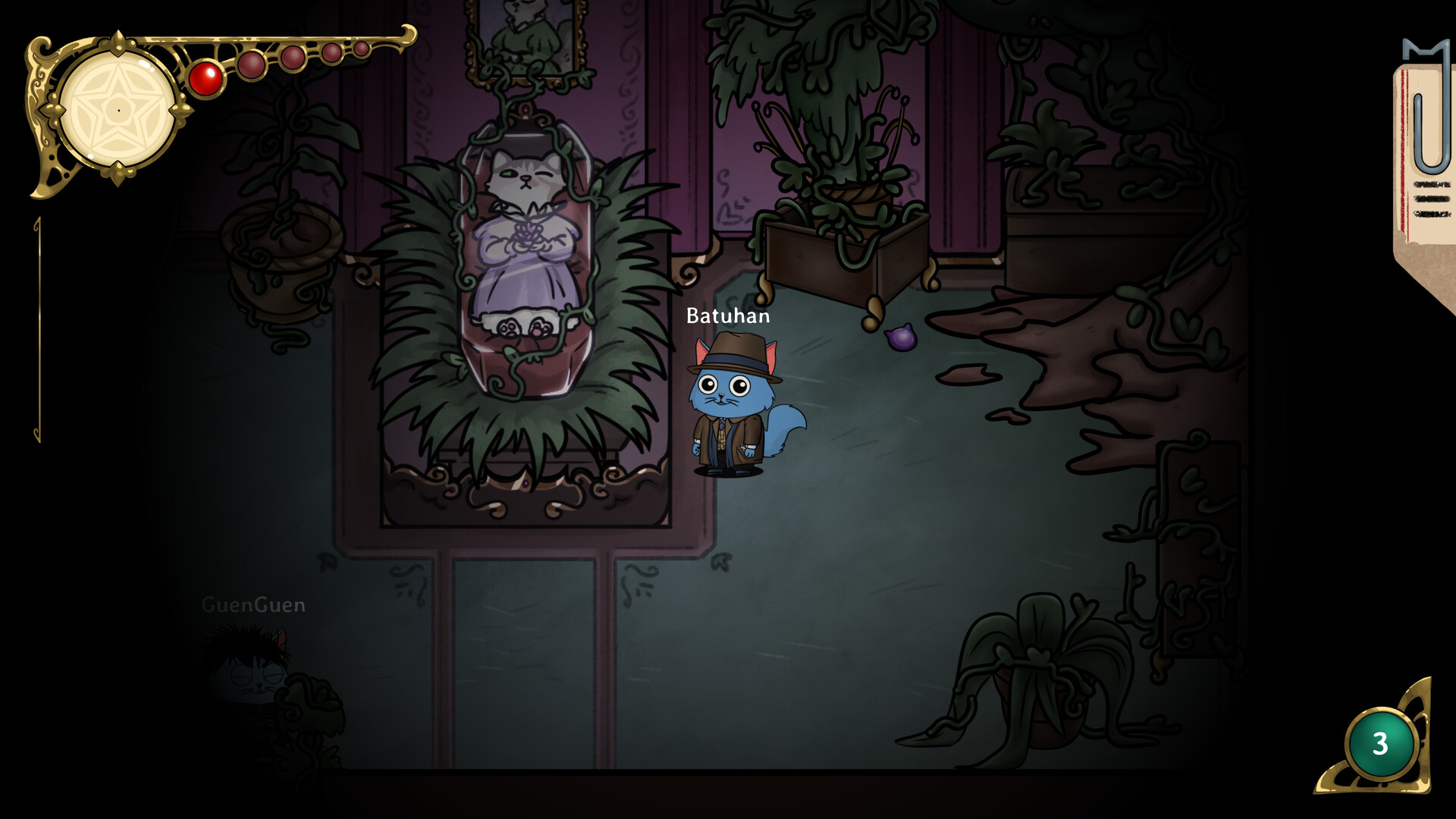 Meowstery Wisp is een sociaal deductiespel voor 5-11 spelers, gebaseerd op onderzoek, manipulatie en vertrouwen. Gedurende vijf rondes zoeken spelers naar artefacten om de eindfase te bereiken, terwijl geïnfiltreerde spionnen in het geheim het onderzoek dwarsbomen en een occultist werkt aan een verborgen meesterplan.
