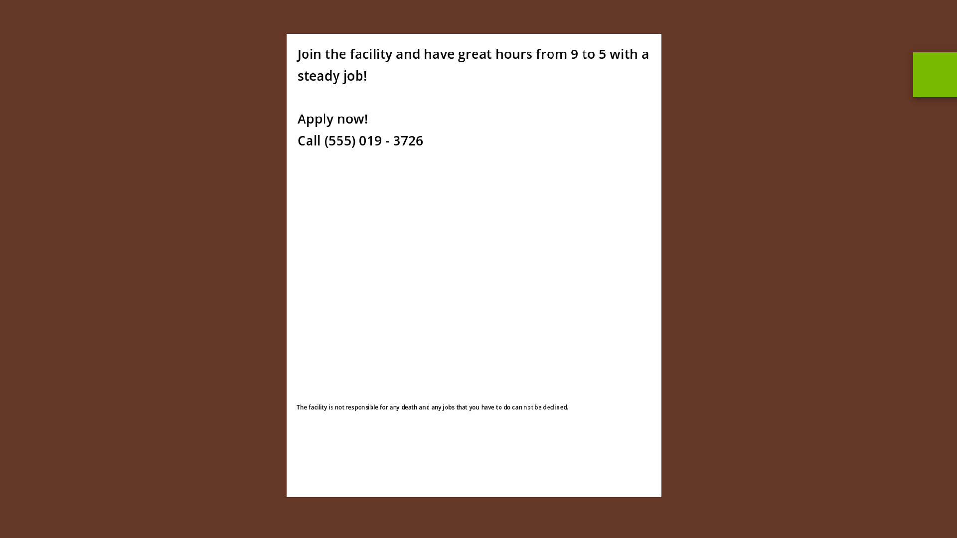 In the facility you go through a story of a worker at a secret facility.