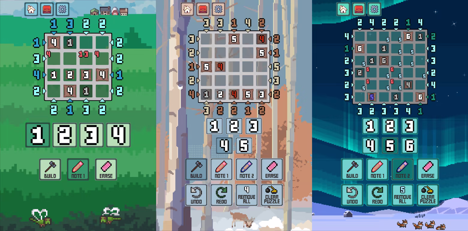 Cityscapes features an endless series of number-placement skyscrapers puzzles in which you place buildings of different heights in a city to satisfy all of the residents' wishes.
