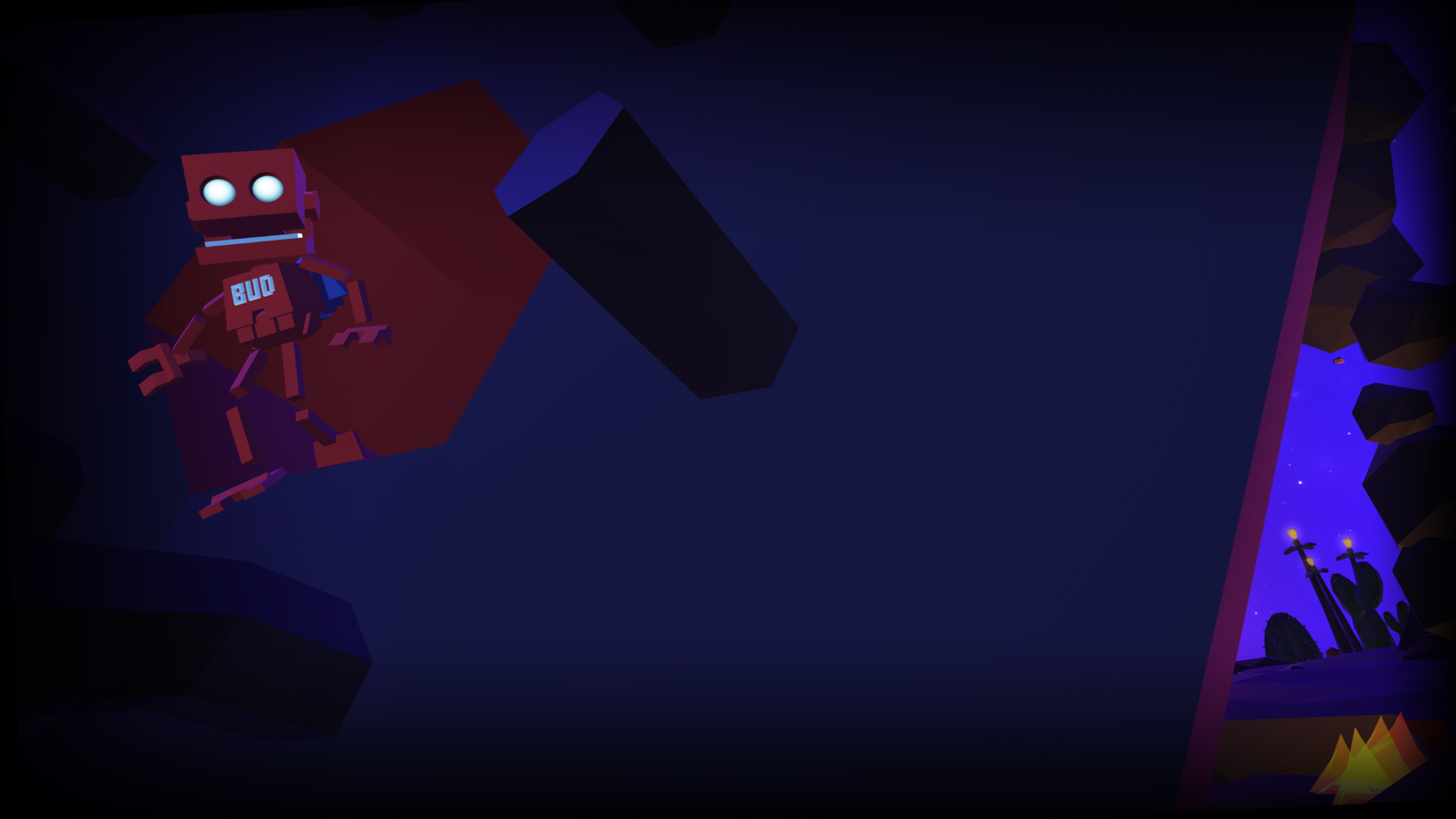Leaping from mind-boggling heights, bouncing off Champolines, soaring inches from floating islands, BUD can do it all - that look of mild terror, that’s his daredevil face. Help the adorable little robot collect MOM’s scattered ship parts and return them to the moon.