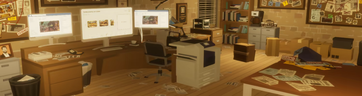 In this virtual reality investigation game, you’re a detective working case by case through a clear, satisfying loop: arrive at the scene, search and collect evidence, then return to your office to organize and connect clues until the full story makes sense.
