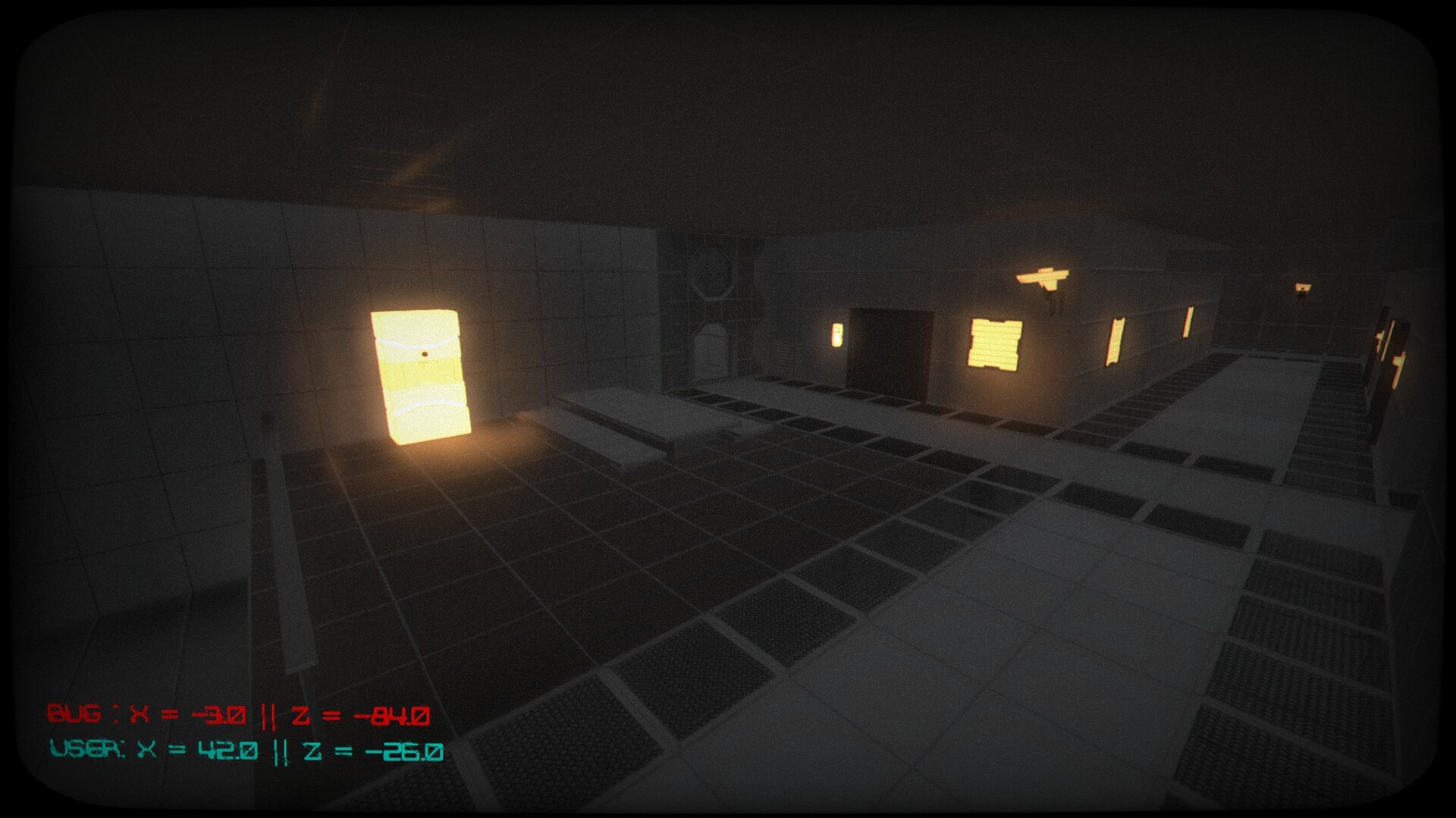 Experimenta esta aventura a través del software deadFish(), un ingenioso sistema de navegación de cámaras que presentan al jugador un divertido desafío a la hora de recorrer el mapa y acceder hasta el mas recóndito rincón, para encontrar el bug.