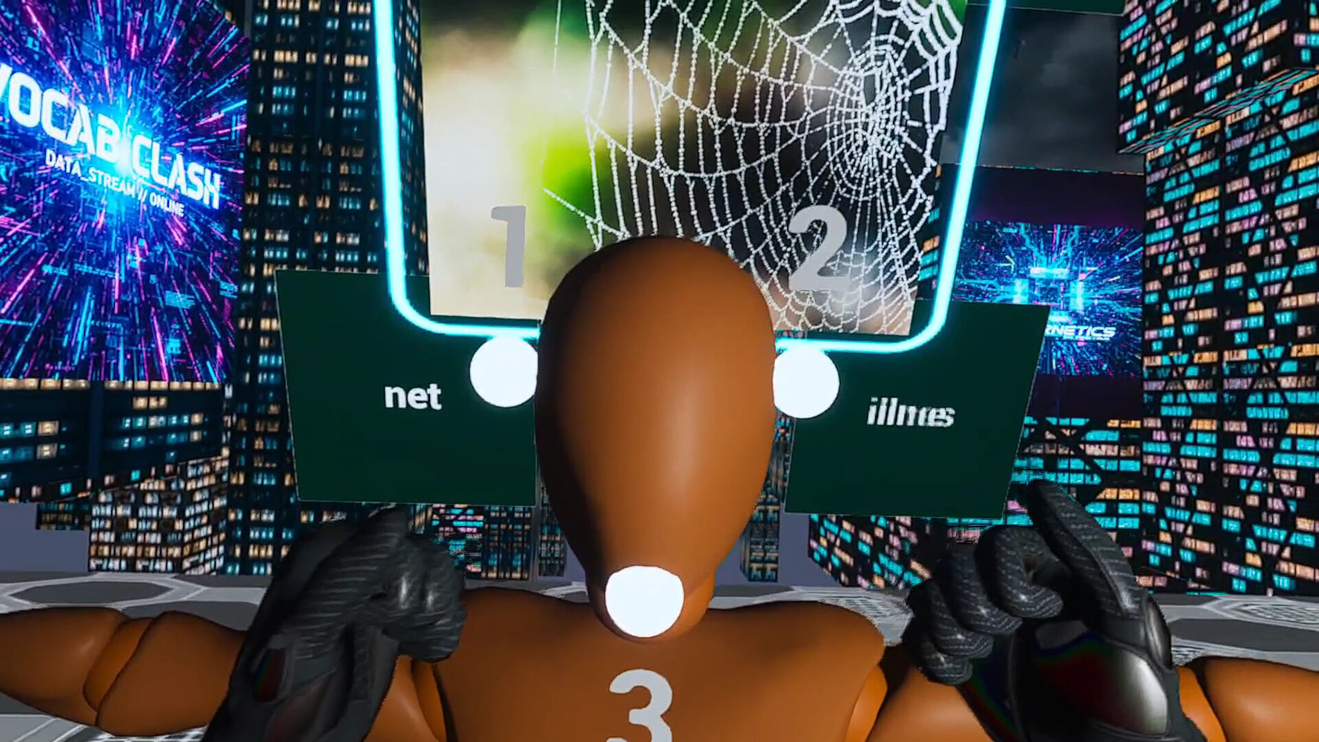 The key difference is that your “selection” isn’t a button press—it’s full-body movement. You punch a target, throw a dart, or accurately hit an incoming ping-pong ball toward the correct option. Physical action and visual understanding merge in an instant, turning word meanings into intuitive reflexes.