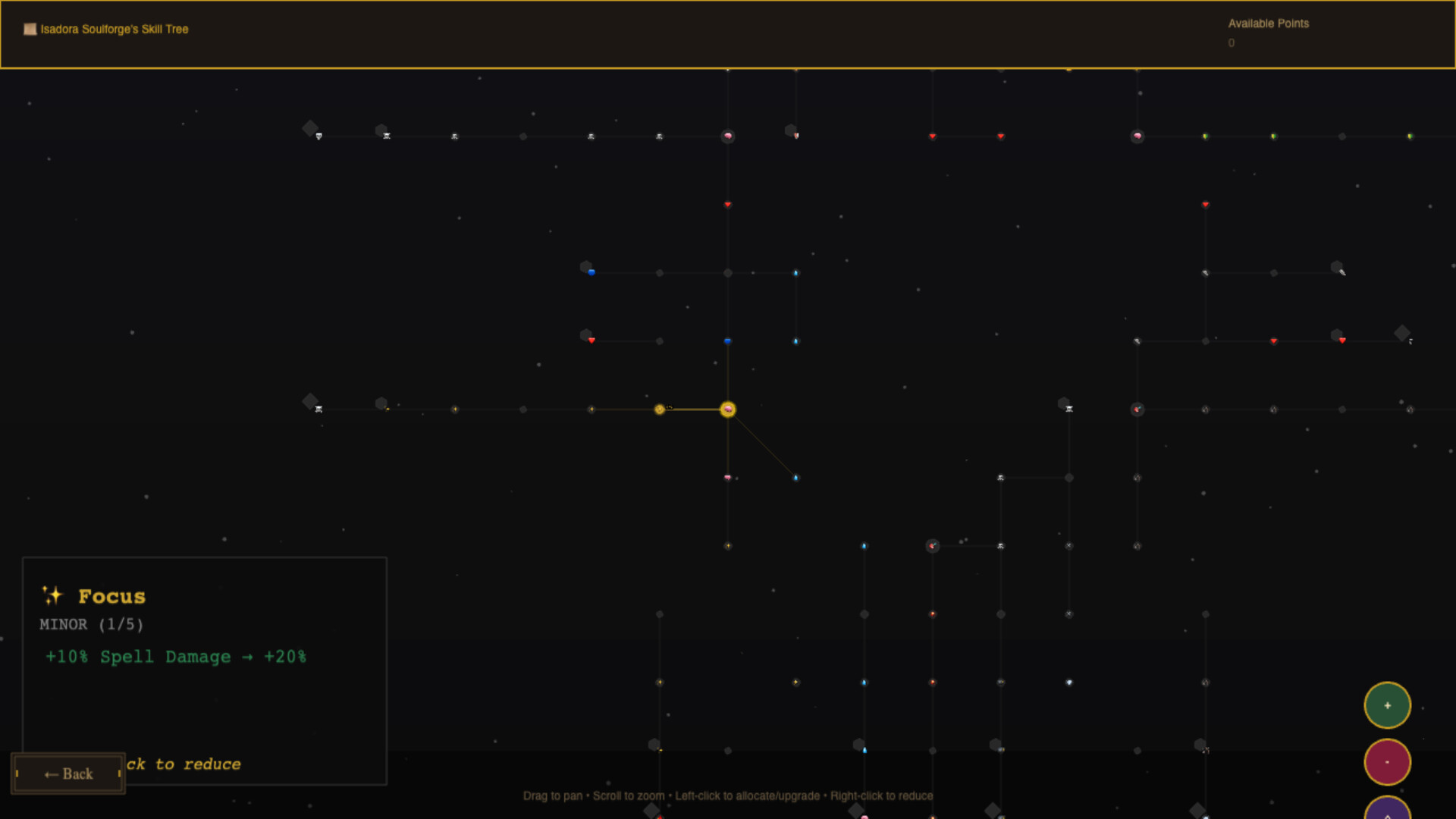 • 76-node passive skill tree with multi-tier nodes (up to 5 levels each) and 9 powerful keystones