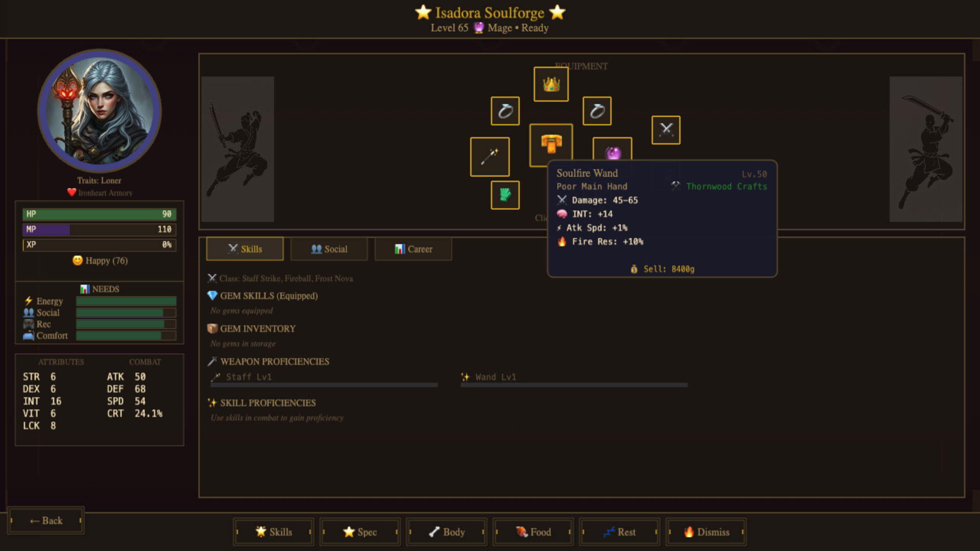 Every hero has a unique personality shaped by 22 different traits. A Gregarious warrior makes friends everywhere. A Jealous rogue starts conflicts. A Psychopath feels nothing when allies die.