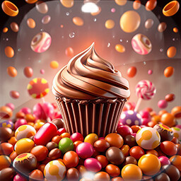 The background images and chocolate pictures are pre-rendered AI art.