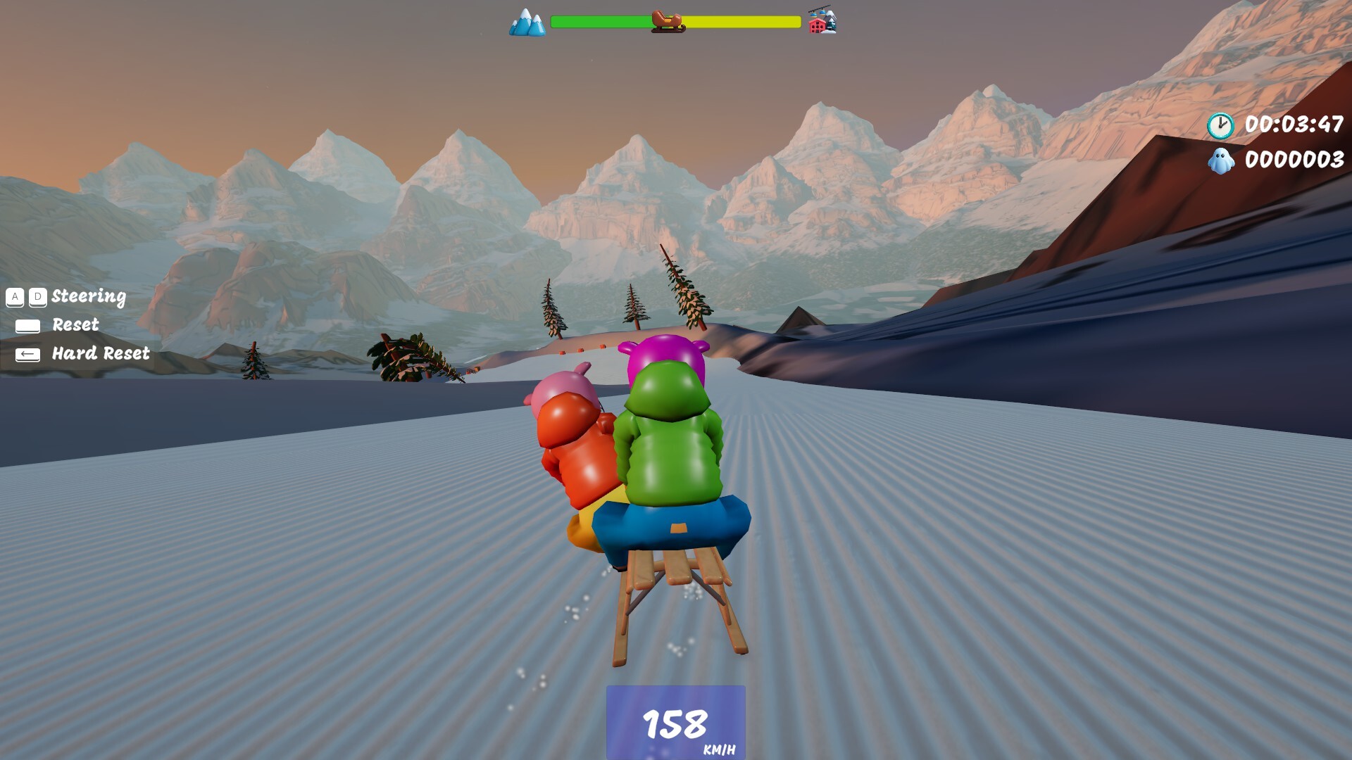 Race down icy slopes packed with sharp turns and unforgiving obstacles. A fast, chaotic co-op game built for speedrunners and friendship stress-tests.