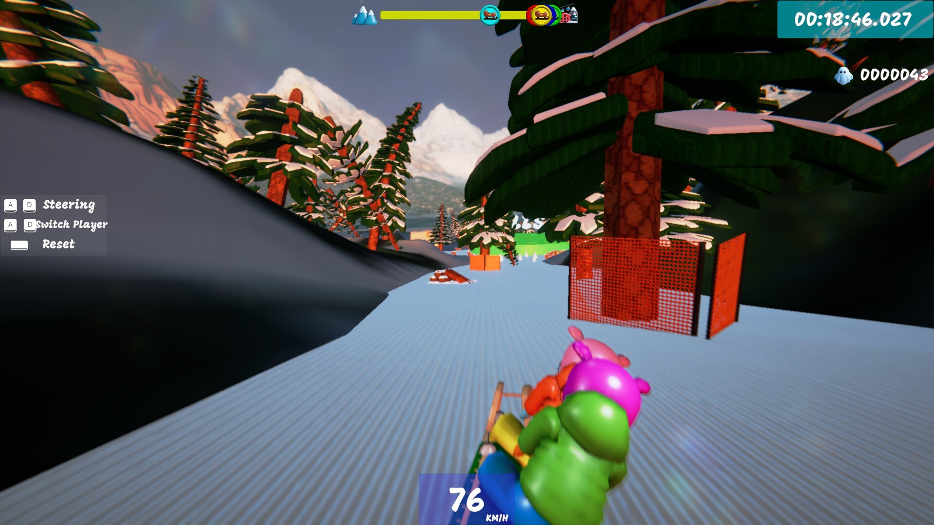 Race down icy slopes packed with sharp turns and unforgiving obstacles. A fast, chaotic co-op game built for speedrunners and friendship stress-tests.