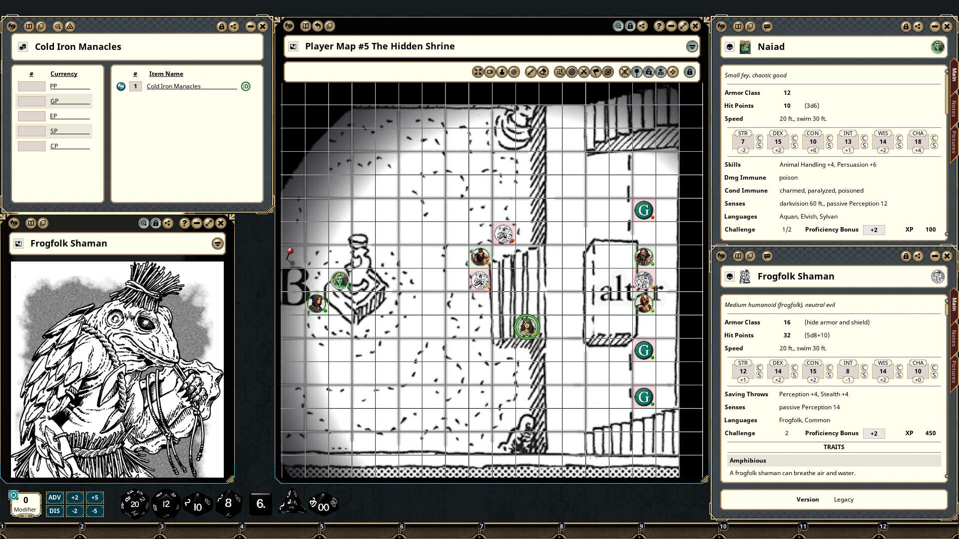 • In addition to detailed encounters in the swampy reed maze, this module contains a keyed frogfolk village, and a ruined shrine now controlled by the despicable new leader of the tribe, plus full 5E statistics on several varieties of frogfolk.