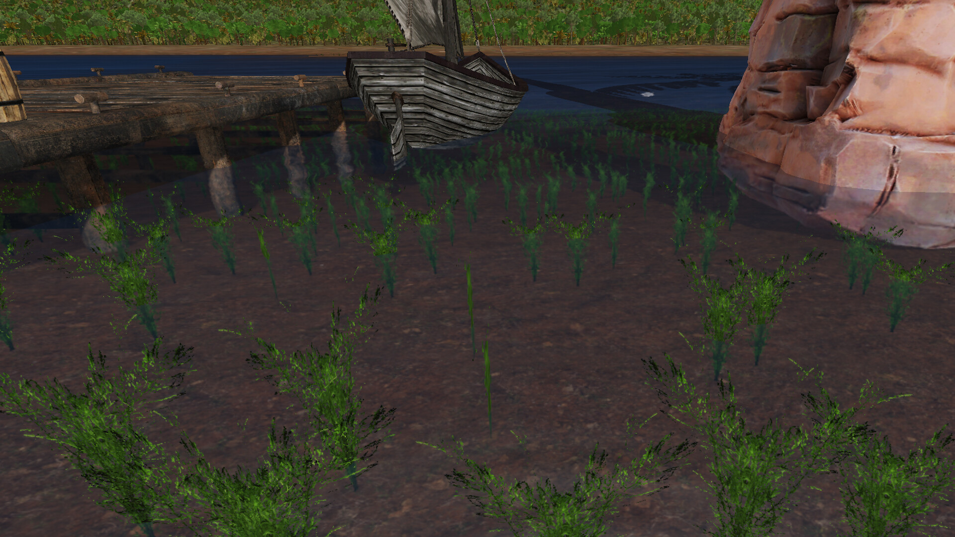 Mine to smelt ores and build better items. Sail across the water on the boat looking at the fish swimming below.