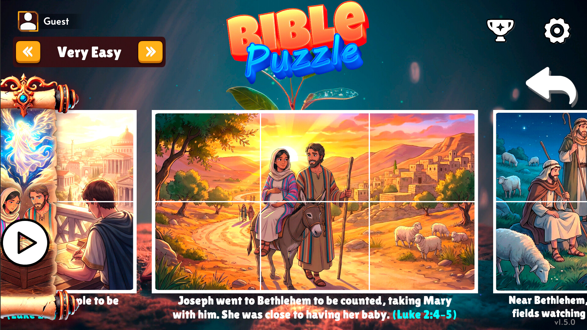 Immerse yourself in the sacred story of the birth of Jesus with our Christmas DLC. Follow Mary and Joseph on their divine journey and experience the moment heaven proclaimed the birth of the King, bringing light and hope to the world. With stunning animated scenes and new 20 inspiring illustrations, this new experience allows you to connect even more deeply with Scripture while solving unique puzzles, all accompanied by soothing and uplifting music. A perfect addition for the whole family this Christmas season.