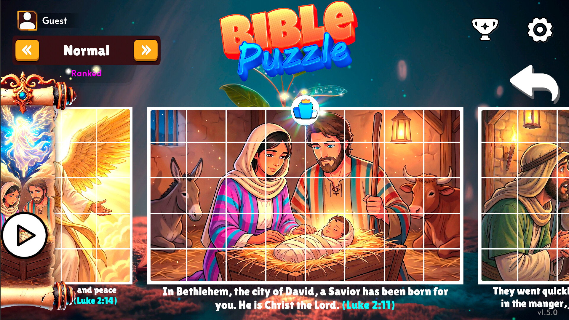 Immerse yourself in the sacred story of the birth of Jesus with our Christmas DLC. Follow Mary and Joseph on their divine journey and experience the moment heaven proclaimed the birth of the King, bringing light and hope to the world. With stunning animated scenes and new 20 inspiring illustrations, this new experience allows you to connect even more deeply with Scripture while solving unique puzzles, all accompanied by soothing and uplifting music. A perfect addition for the whole family this Christmas season.