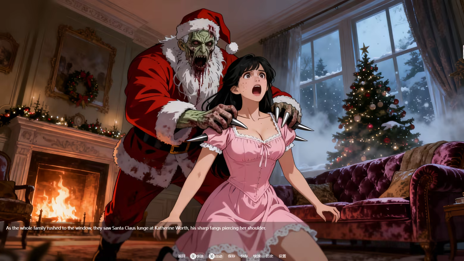 • Gothic Christmas Eve:Fog-shrouded London streets, a cozy living room covered in snow, and a blood-stained gift box under the Christmas tree—a truly retro atmosphere.