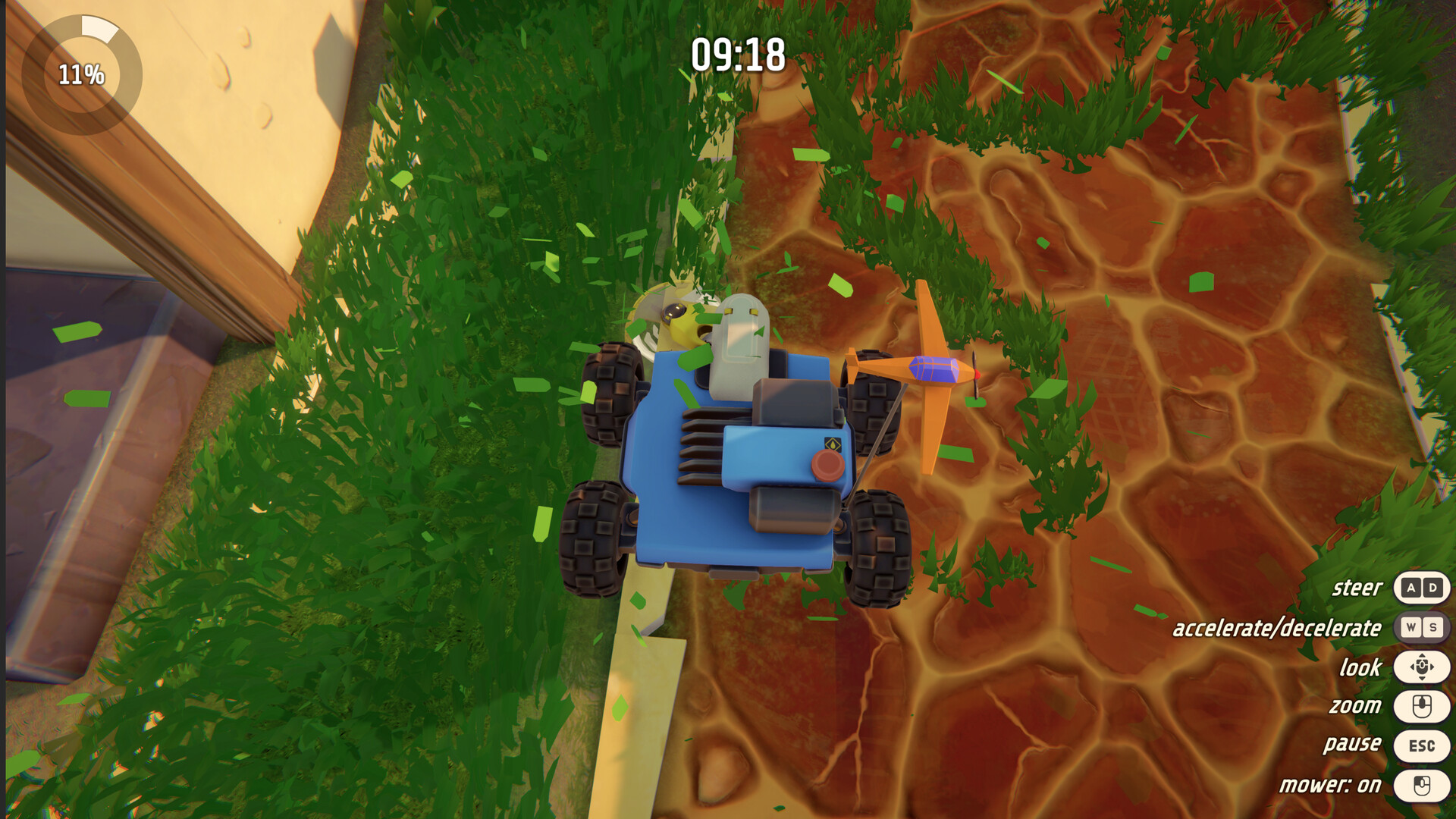 Grass is built around co-op play. Split up tasks, cover more ground, and coordinate your tools to get the job done efficiently. One person mowing while another trims and cleans turns hard work into a smooth, shared rhythm. Solo play works too, but everything’s better with friends.