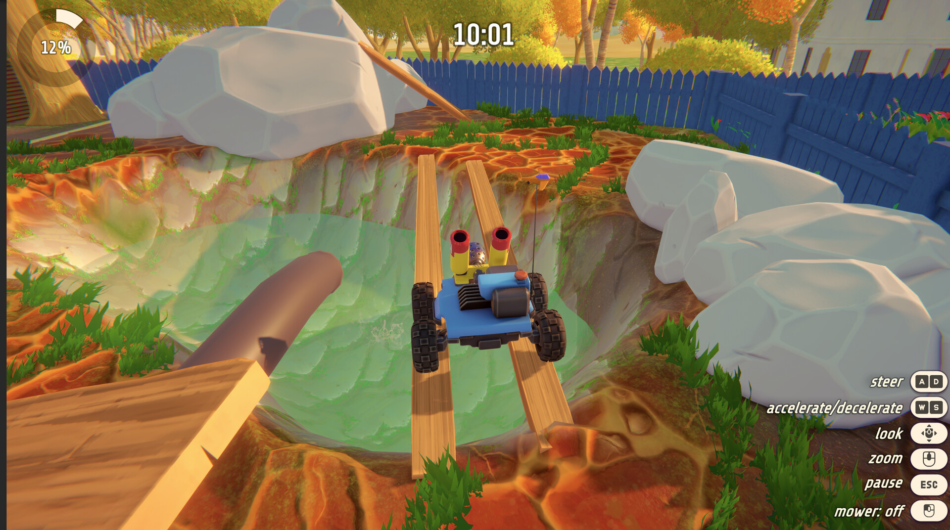 Grass is a cozy co-op lawn care simulator about rolling up your sleeves and taking care of overgrown spaces together. These properties need a little love, and with the right tools and a good crew, you can bring them back to life one yard at a time.