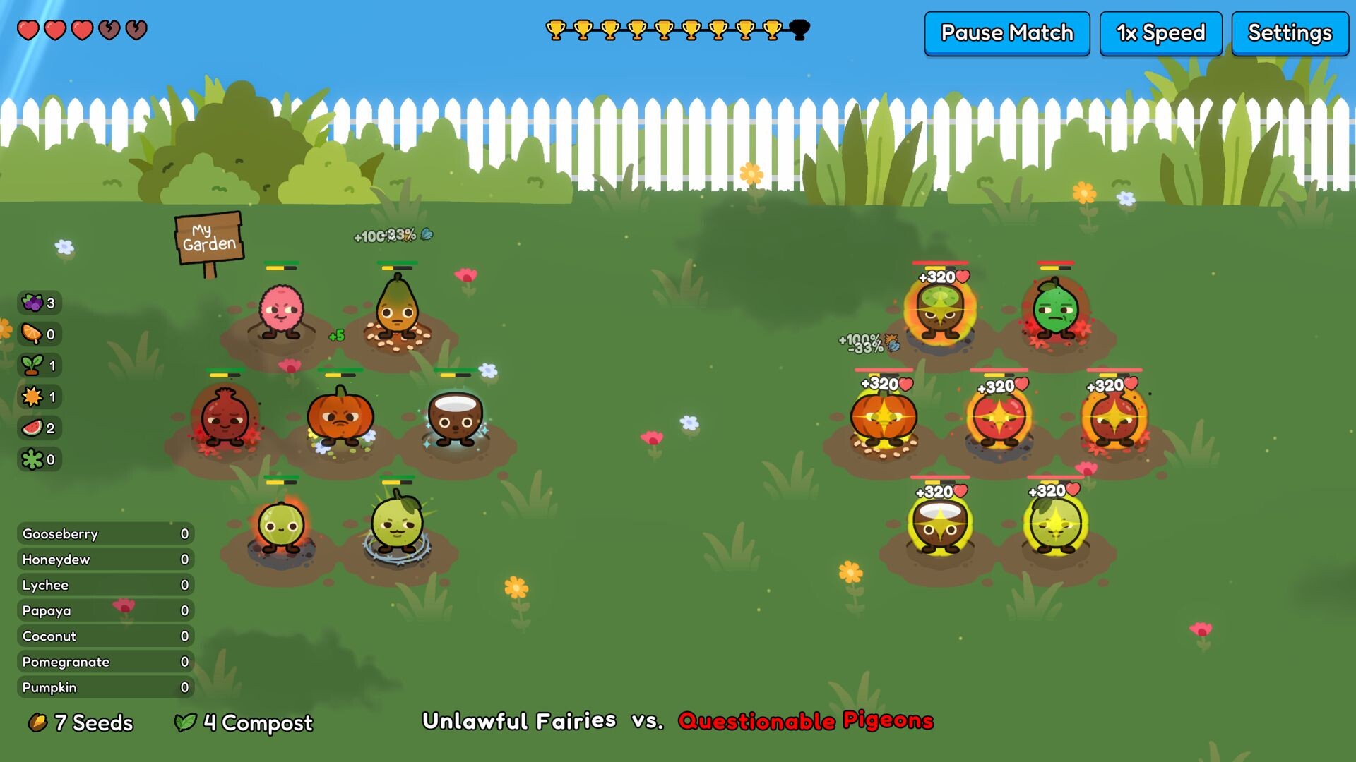 Craft a unique team of fruits that synergize well with each other to overcome teams that other players have cooked up.