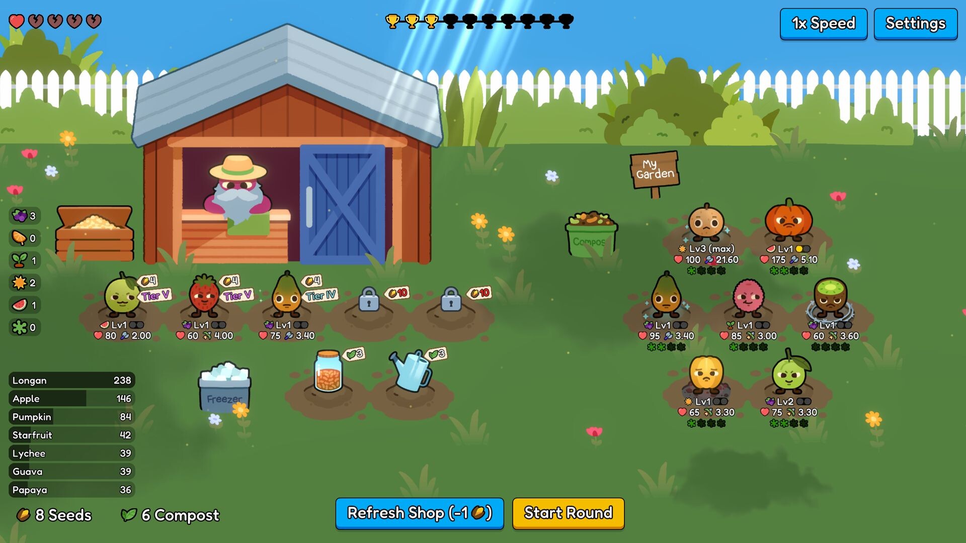 Craft a unique team of fruits that synergize well with each other to overcome teams that other players have cooked up.