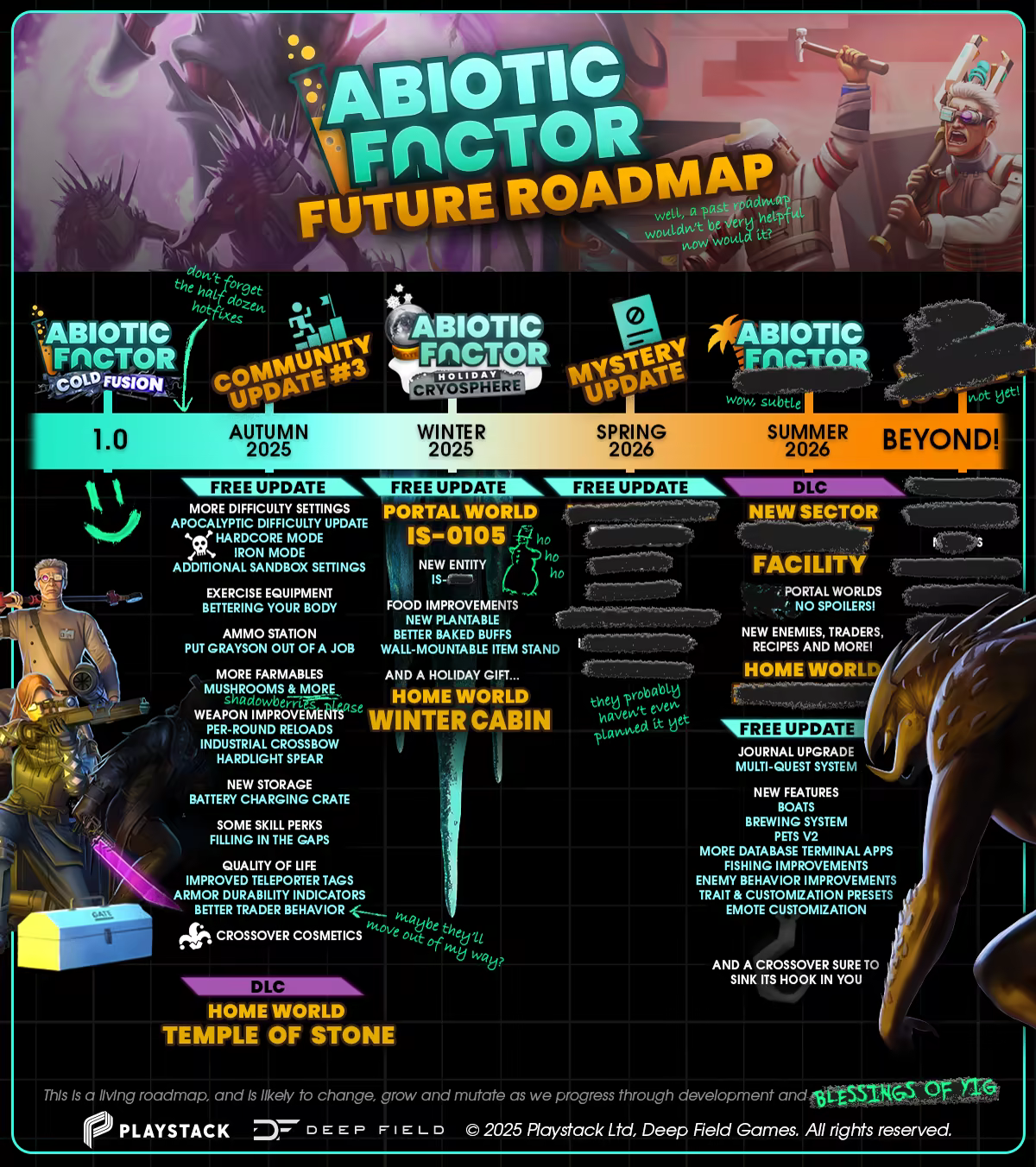 Abiotic Factor aporta un toque de ciencia ficción de los años noventa y una rica progresión de personajes al género multijugador de creación y supervivencia en un mundo abierto. Hasta seis jugadores pueden elegir una titulación de doctorado, configurar un científico, equiparse y explorar un enorme complejo subterráneo lleno de artefactos sobrenaturales, enemigos transdimensionales y experimentos científicos que han salido mal.