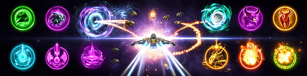 Twin-stick space combat roguelite with 12 abilities, 5 reality-warping ultimates, and 20+ enemy factions that each fight differently. Permanent upgrades that stack across hundreds of hours. Quick missions, deep progression, zero runs wasted.