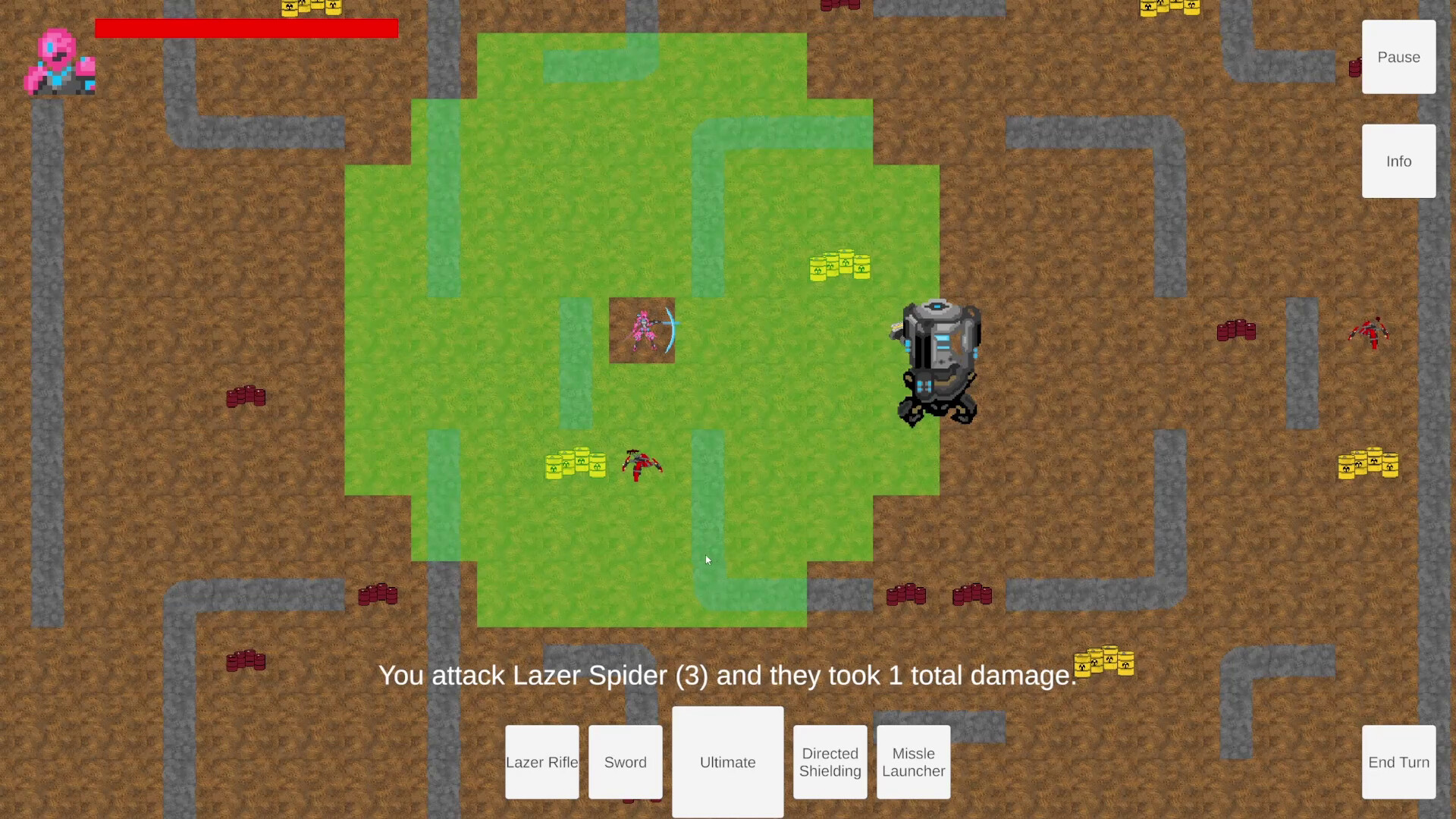 You control your character with the mouse; you click on highlighted tiles to move and pick an ability from your hot bar that you have equipped from the info menu, then select a highlighted spot to attack. If you do not want to attack, you can select the ability.