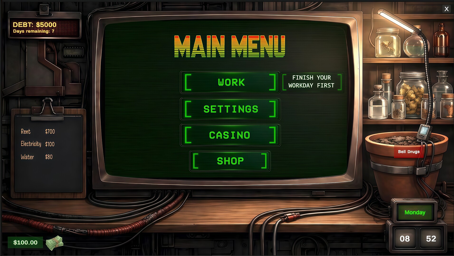 What's your morale worth when you owe $50,000? Survive the suffocating grip of debt in this capitalist survival simulator; it's not just a job, it's a prison sentence.