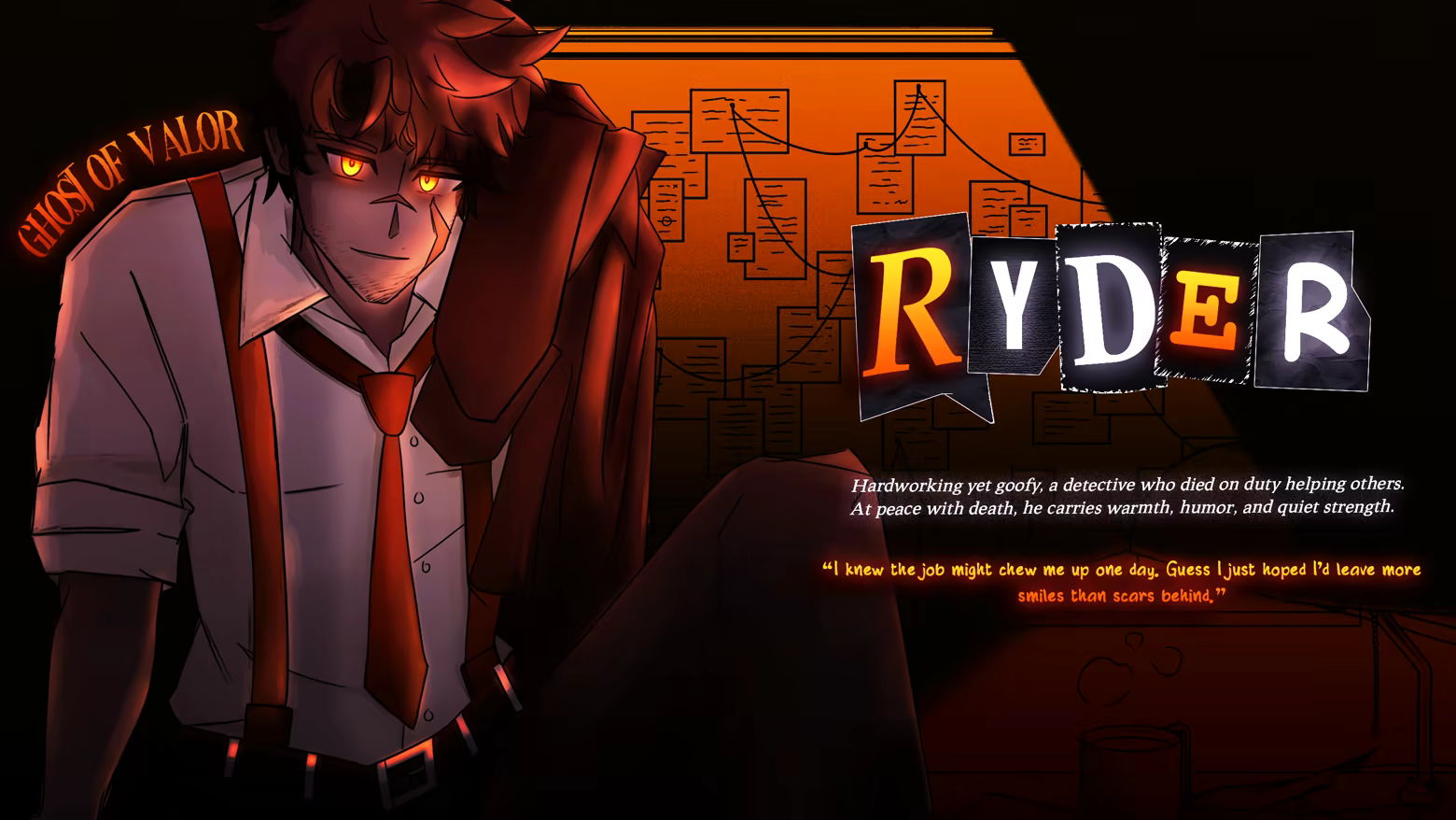 Ryder: A detective who died with honor, now learning to live without purpose. This hotel holds many secrets... perhaps he can get to the bottom of this case?