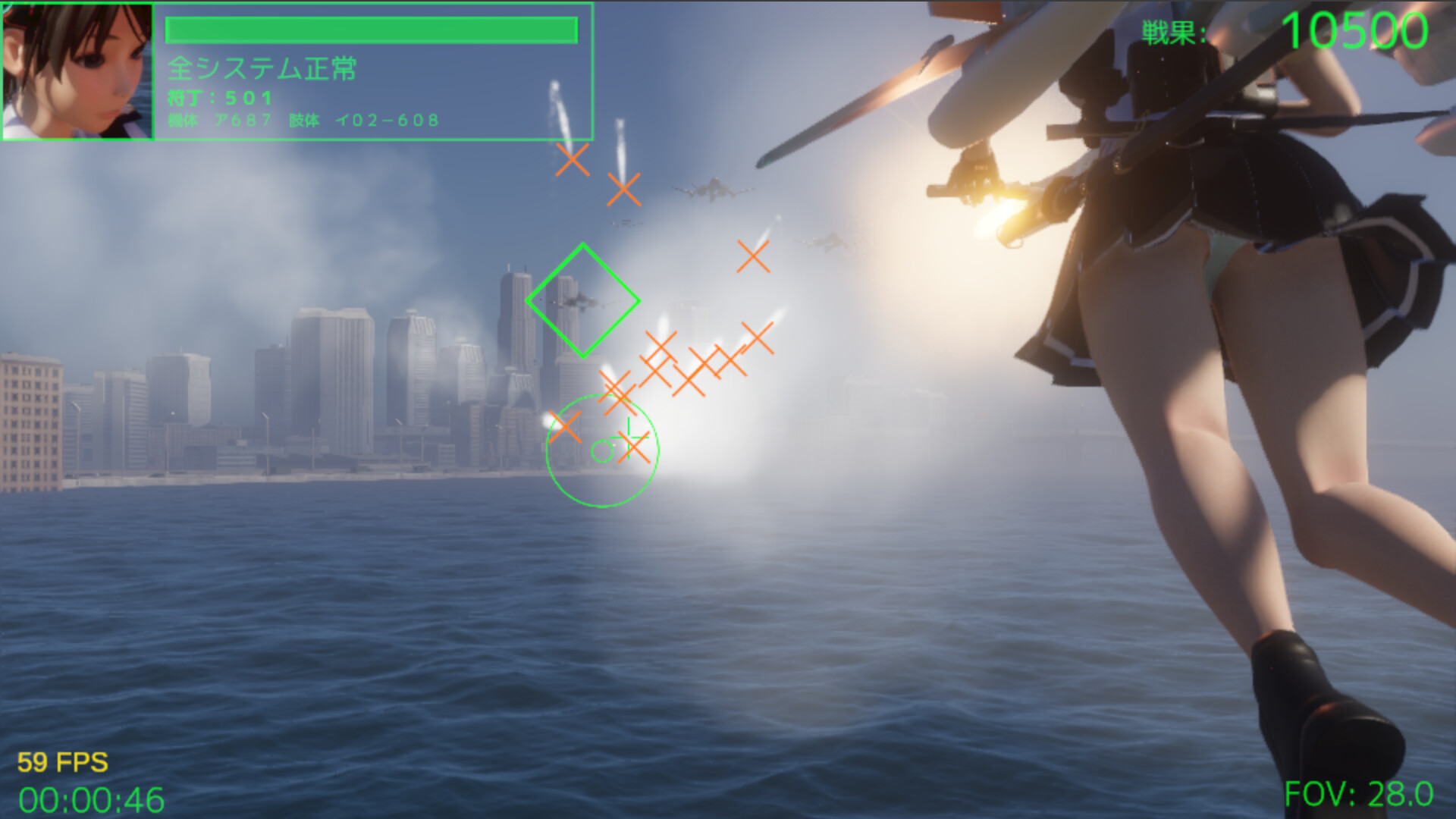 A 3D rail shooting game. Skillfully control the aerial combat humanoid "Shiki" to smash through obstacles and defeat approaching enemies! There are also fantastic bonus scenes!