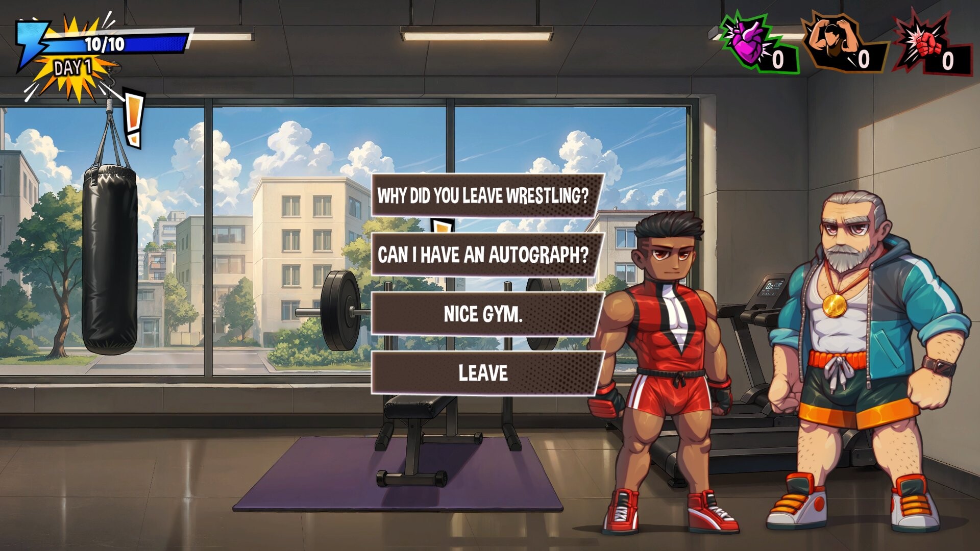 Turn-based 1v1 wrestling with stats, training, and spicy 18+ vibes. Fight femboys and futa rivals, manage energy, hit the gym, and use seduction skills to climb a no-rules tournament packed with sexy surprises.