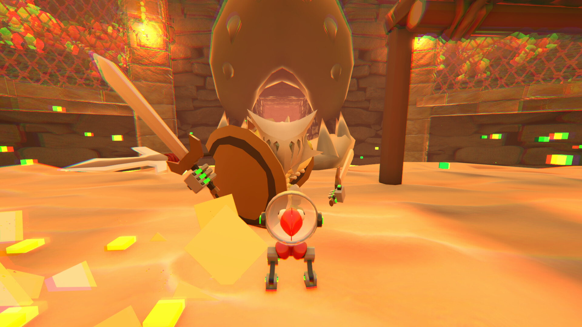 In our game enemies can be dismembered in cartoonish way. This occurs frequently.
