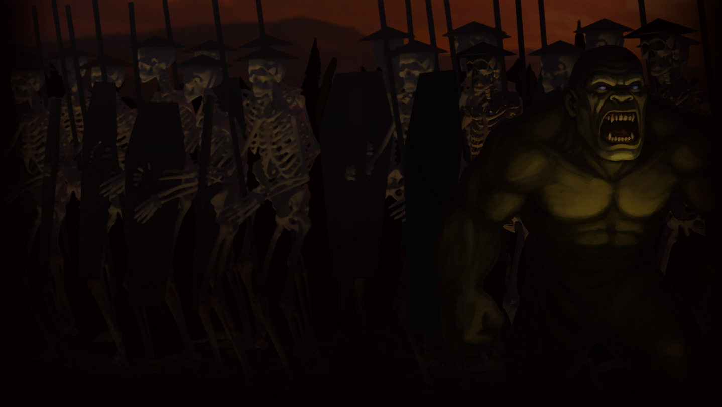 In a war-torn world, mighty armies clash to decide the fate of imperiled realms. Brave warriors march forward accompanied by fearless heroes, terrifying monsters and devastating machines of war. Swarms of arrows darken the sky, swords clash against shields, and bloody banners are held aloft in victory, amongst the carnage of the battlefield.