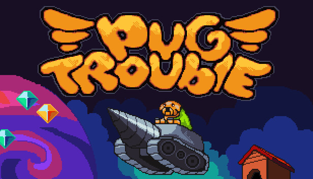 Pug Trouble is a fast-paced, bite-sized action game with light roguelike elements, featuring 5 compact levels that are partly randomly generated for replayability. Blast through destructible blocks, collect valuable gems, and fight your way toward the exit while taking down enemies along the way.