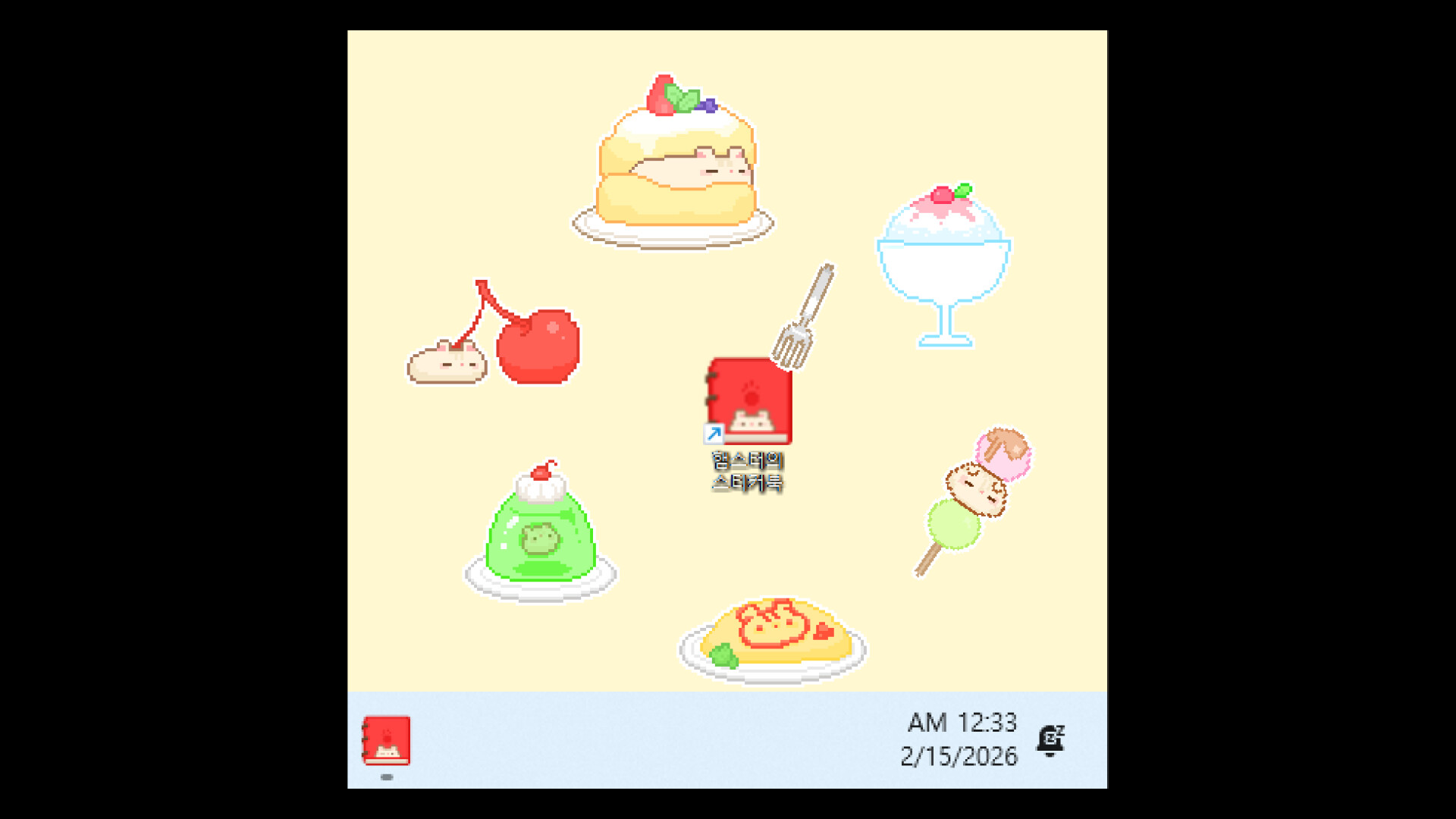 Decorate your desktop with cute stickers! A desktop overlay sticker book where you can freely attach and remove stickers on your screen while working.
