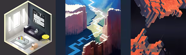 For the craftsman looking to build worlds, Hexels provides a set of grids and guides for drafting all forms of isometric art. Raise walls, carve mountains, bend perspective to your will and build impossible wonders.