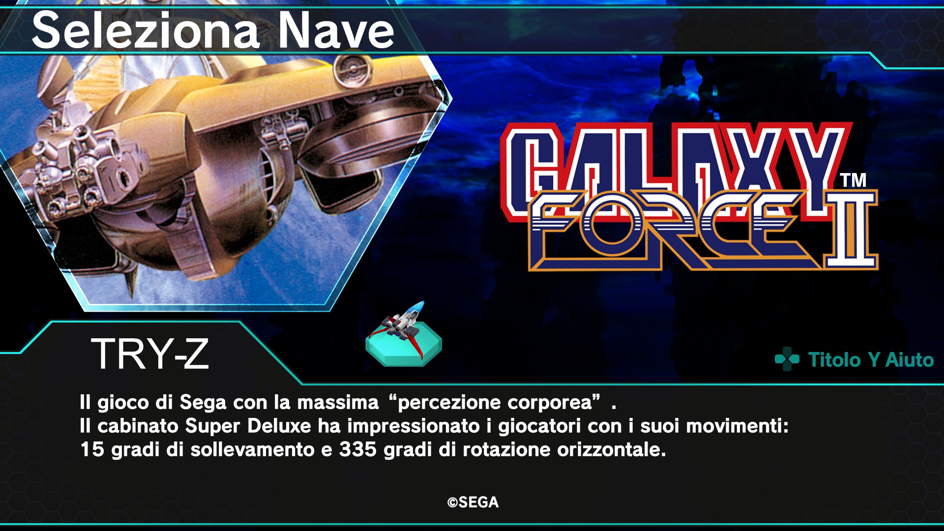 Galaxy Force II, l'eccezionale sparatutto ambientato in un'universo fantastico, è stato uno dei pionieri della grafica pseudo 3D. Schiva i colpi avversari e lancia i tuoi missili per abbatterli.