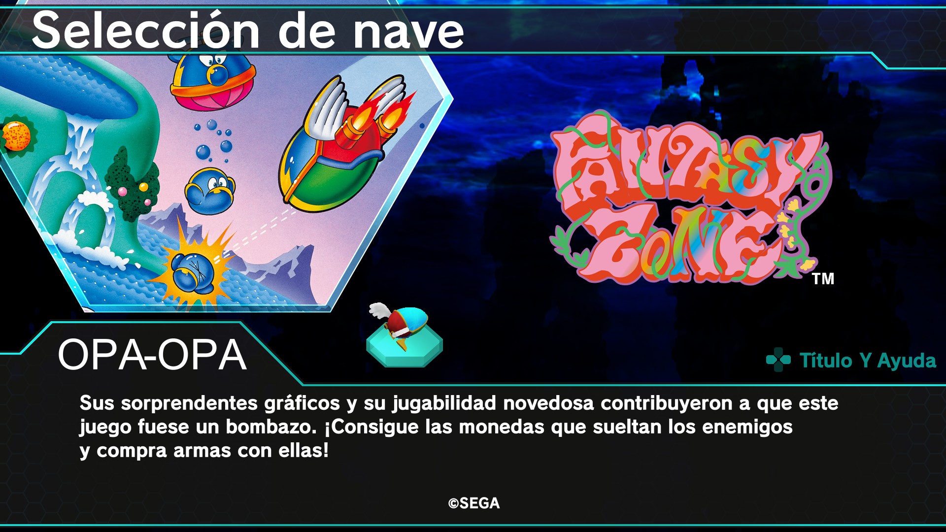 Fantasy Zone es famoso por su scroll multidireccional y su sistema de tiendas. Al igual que en el original, los enemigos derrotados sueltan monedas con las que podrás comprar ataques más poderosos.