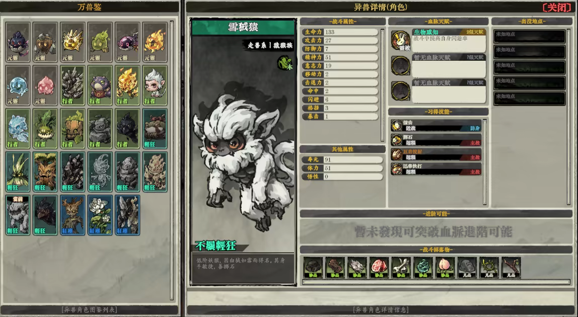 游戏设有图鉴系统,有超多种族和角色需要通过不同途径获取和收集。