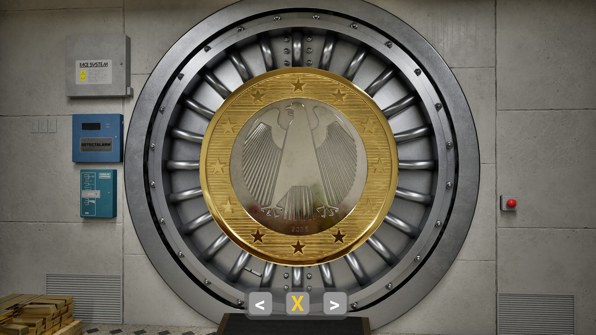 A 3D third-person simulator set in a realistic bank vault where you find, inspect, and physically interact with the exact coin you paid for, blending minimalist gameplay.