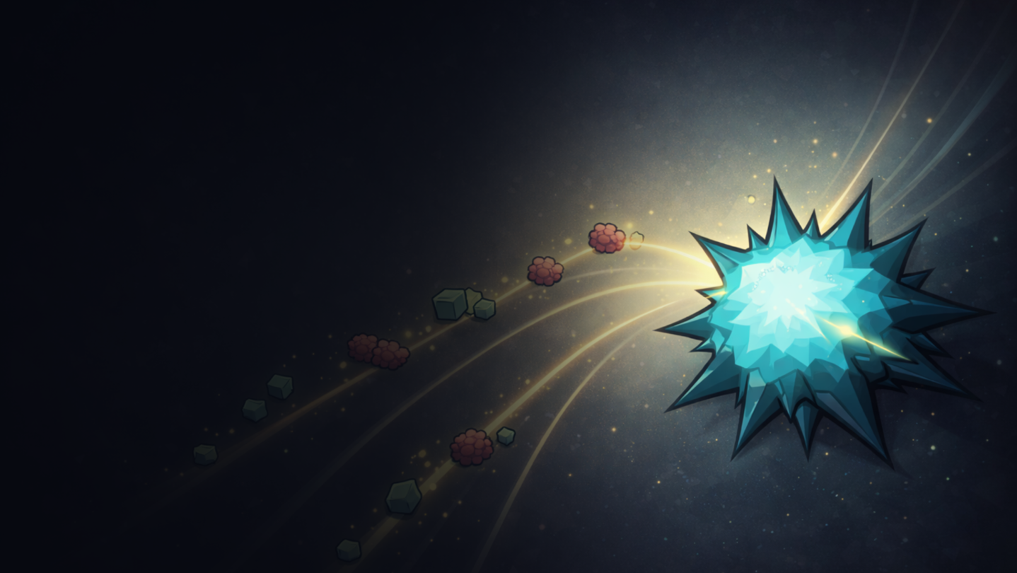 By moving your cursor, you destroy clusters and gather biomass scattered across the field. As you grow, you can recruit small units that form a colony and help you gather resources more efficiently.