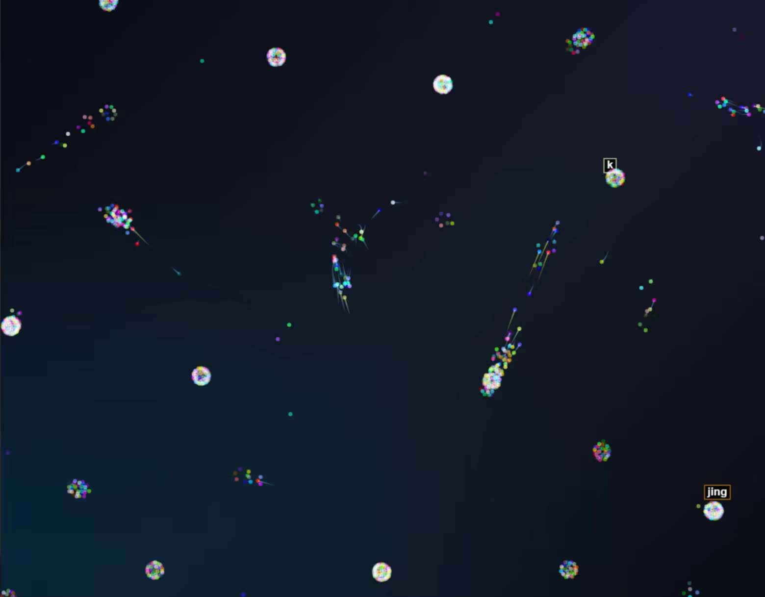 Watch particle trajectories, structures forming and dissolving, and experience a calming, hypnotic flow of light and motion.