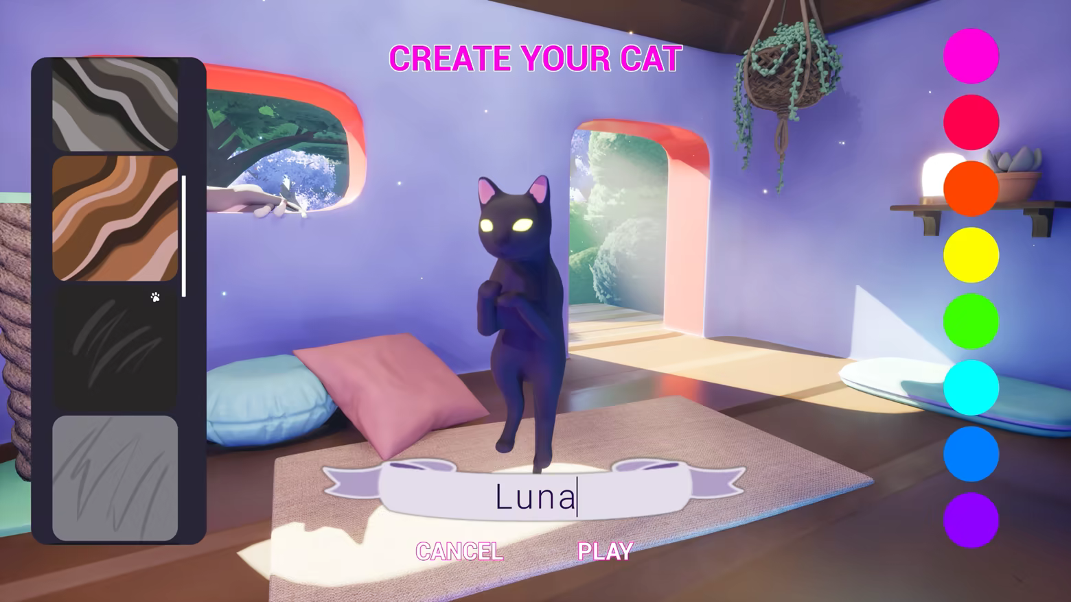 Start your journey by choosing your fur and laser color. New unique fur colors can be unlocked throughout the world, so be sure to keep a lookout. You can change your fur and laser color at any time!